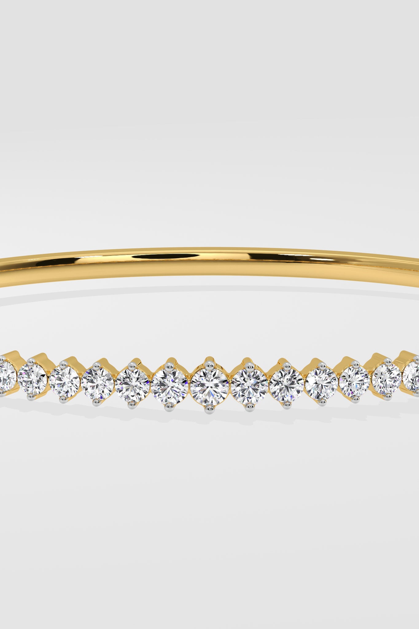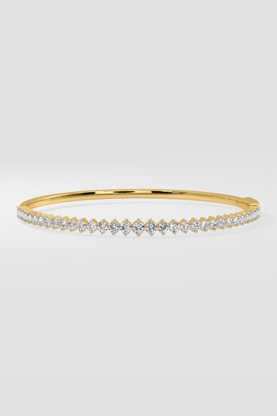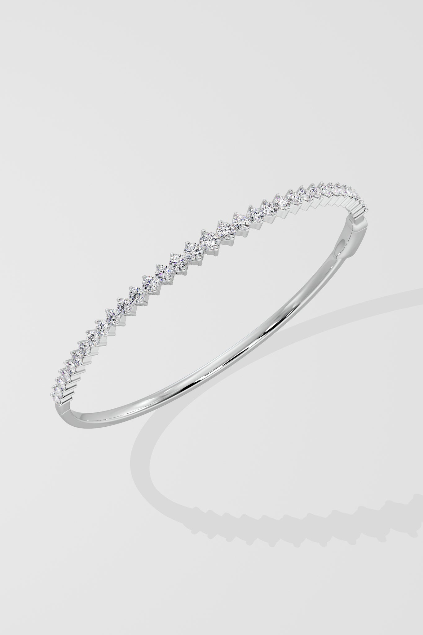 The Spark oval bangle features a 0.07 ct diamonds set in a vertical prong setting, giving it a distinct diamond shaped look. This slight distinction makes this an elevated classic.