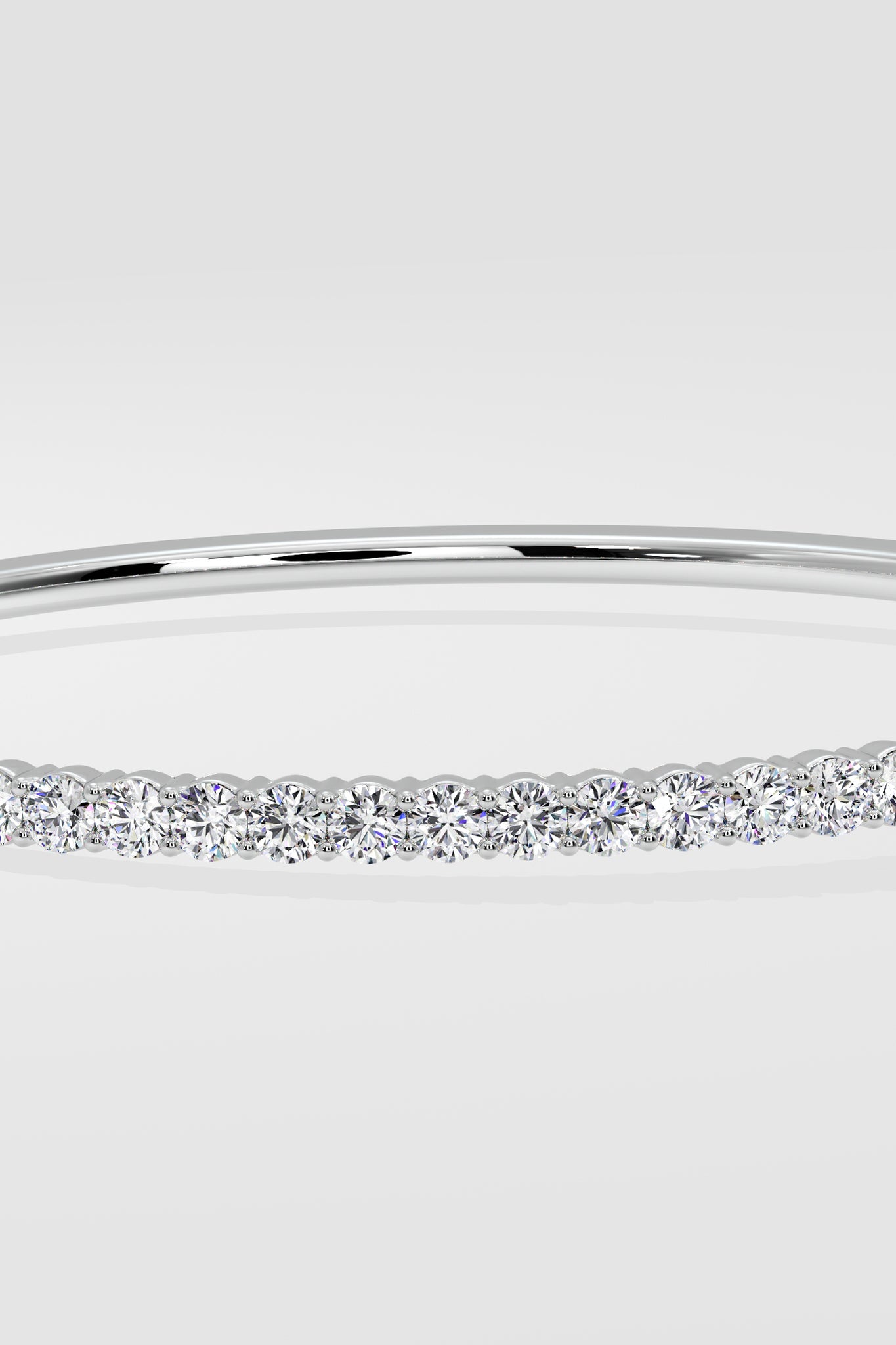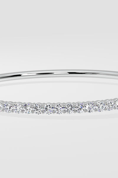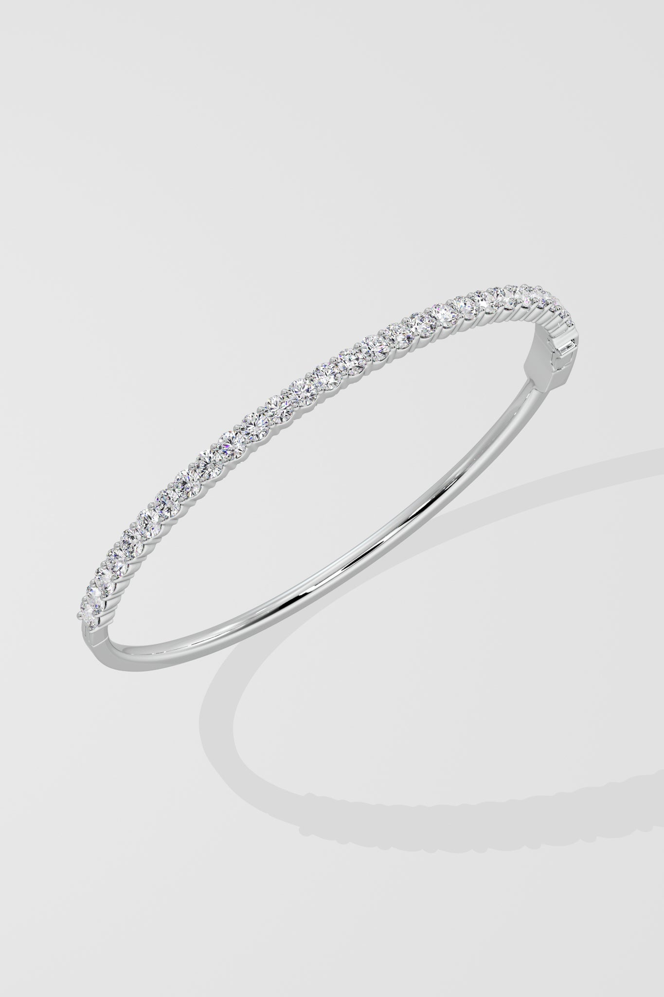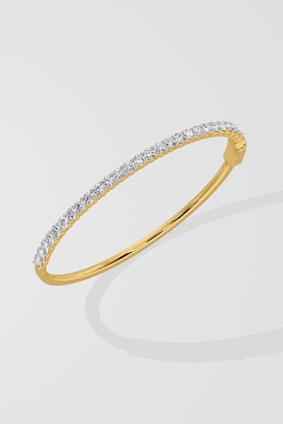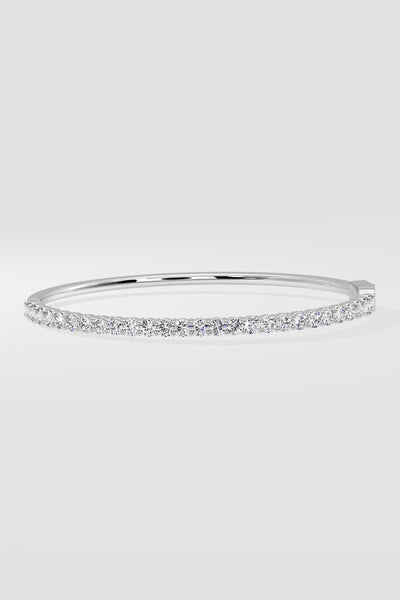The 0.10 ct Pointer Classic Oval Bangle features diamonds set halfway across the top in a sleek oval design. The all time favourite stack piece for your wrist.