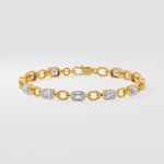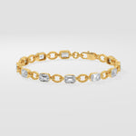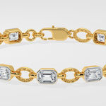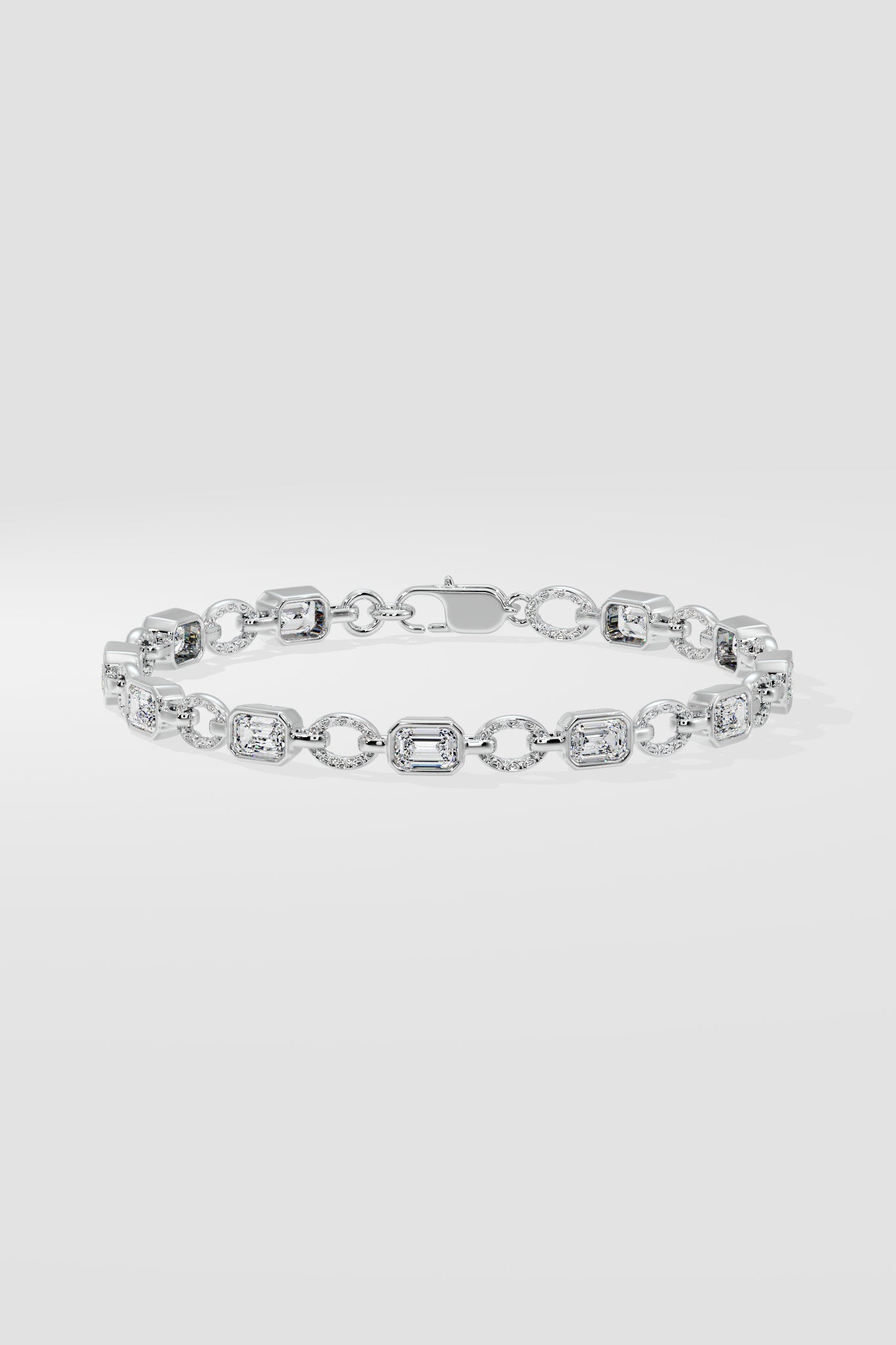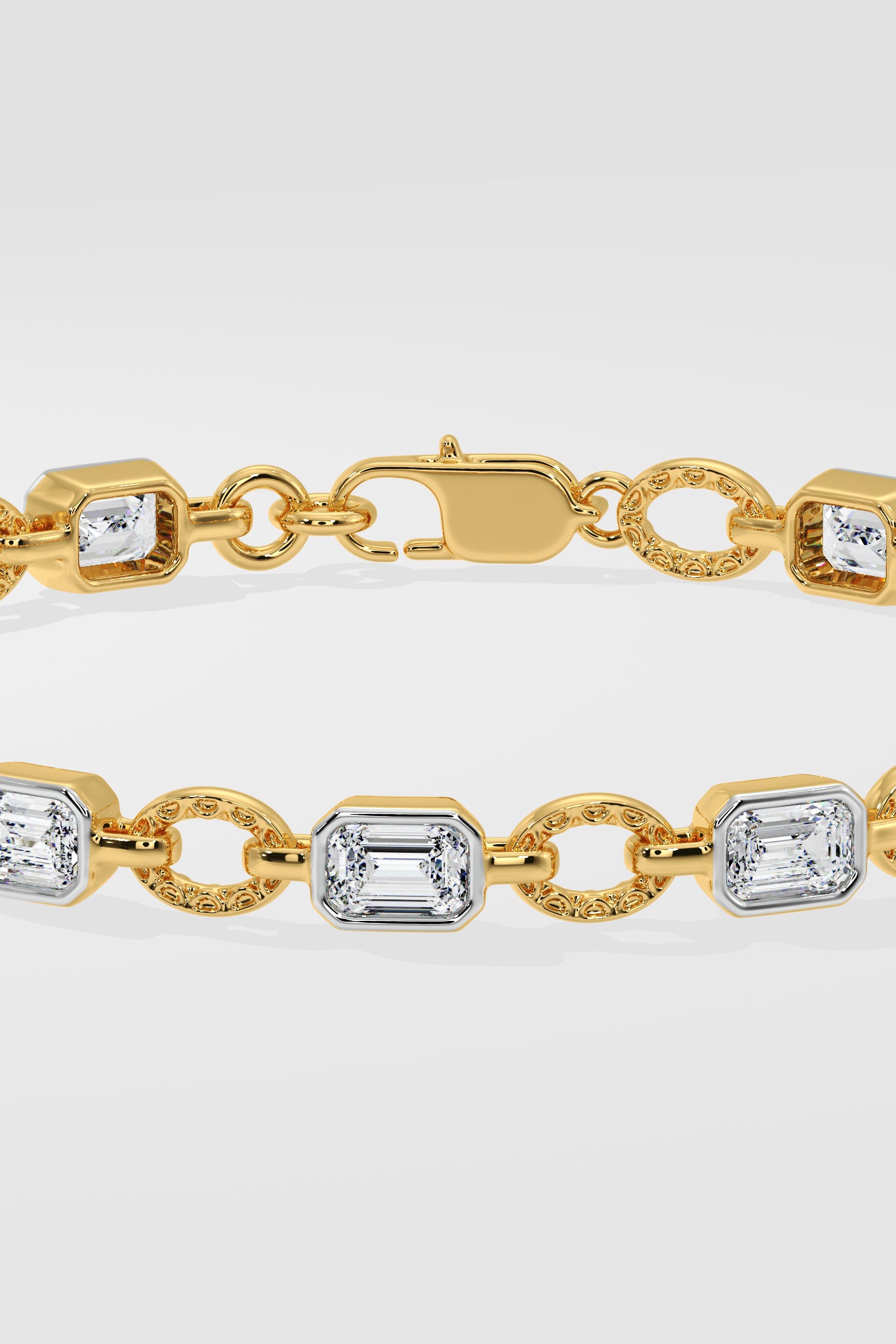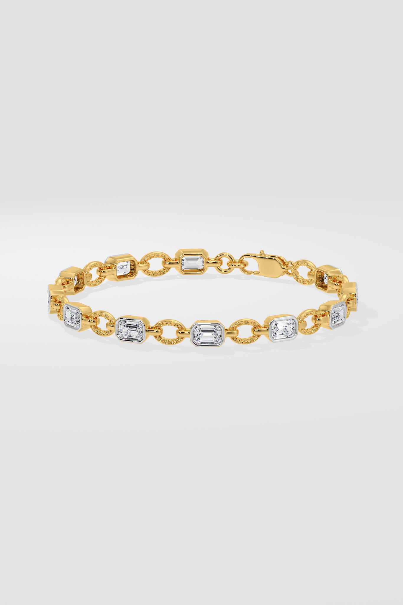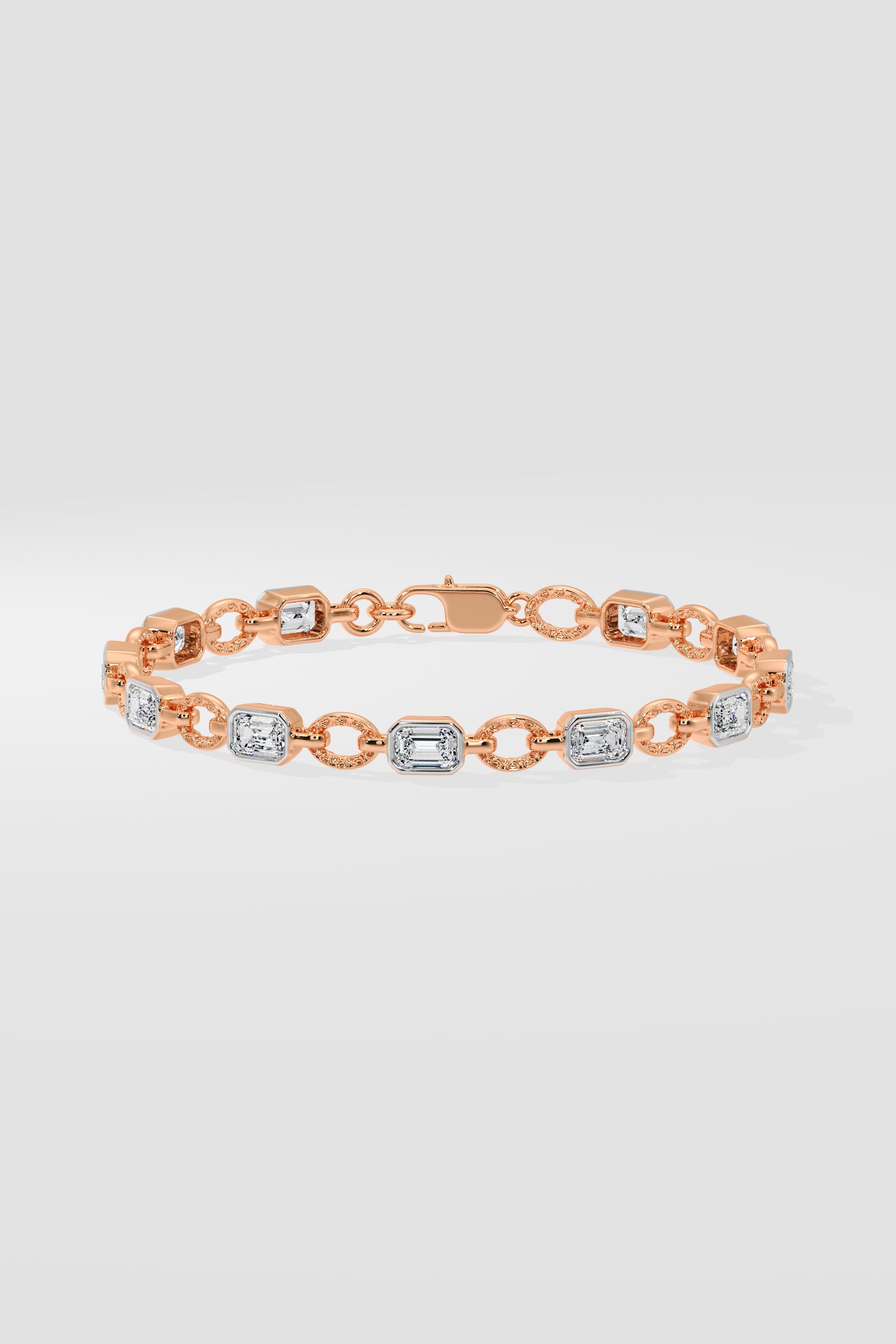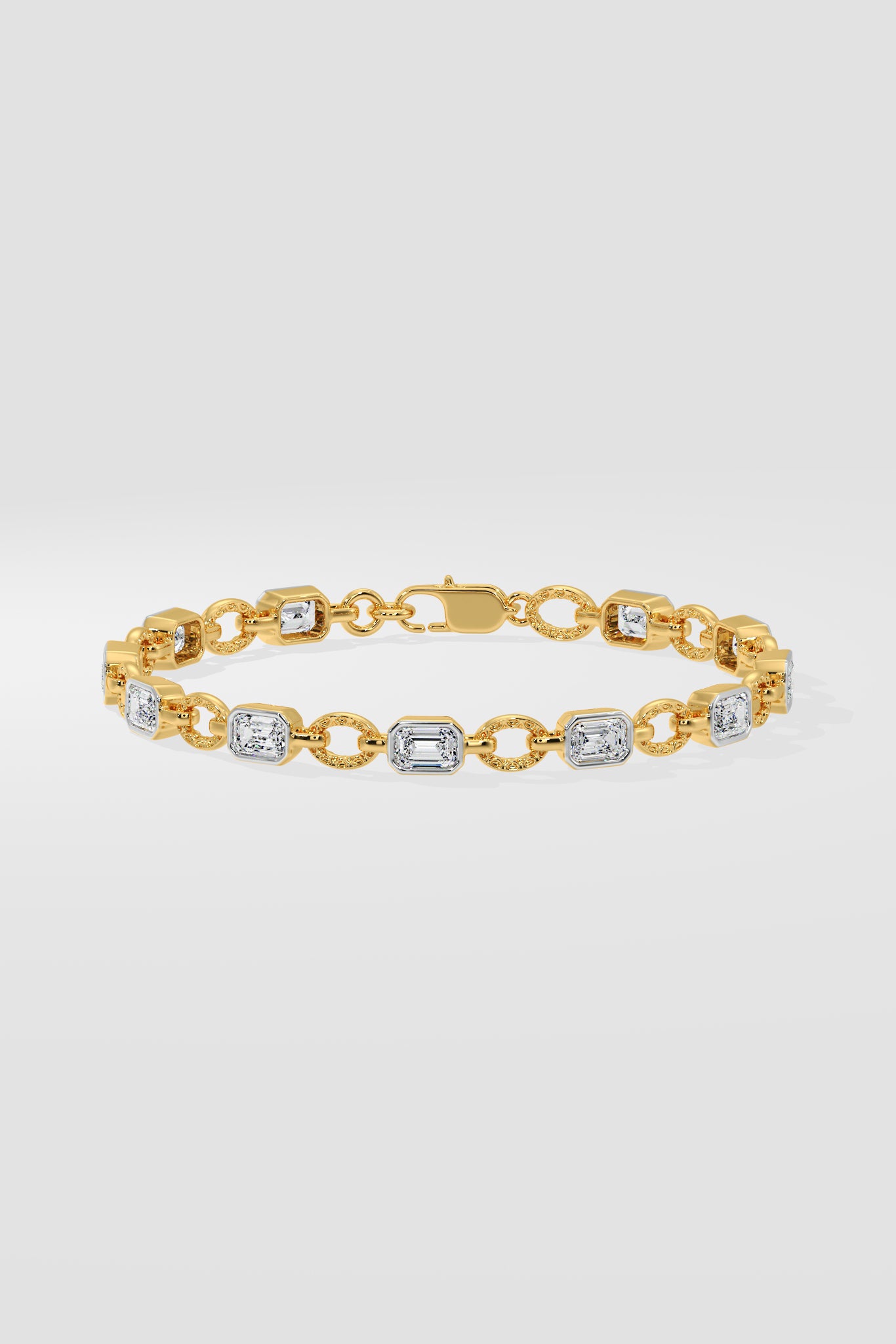 The Tracery bracelet features 0.35 ct each emerald-cut diamonds connected with gold links with micro filigree work. A design detail so distinctive yet subtle, it's the perfect elevated classic.