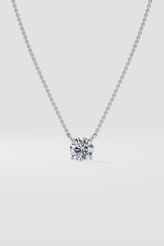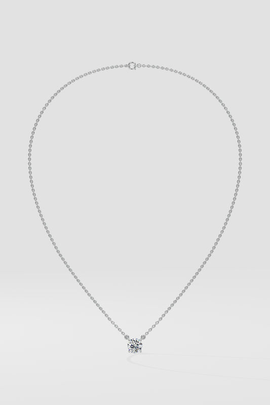 A classic solitaire pendant combines well with everything in your neck stack. This 0.50 ct round brilliant is elegance and sophistication. Classic prong setting with the dainty chain attached at an angle to let the diamond sparkle. Will look great in a rose gold option too.