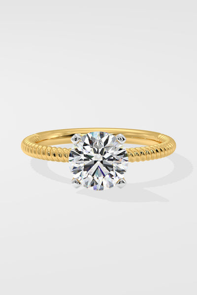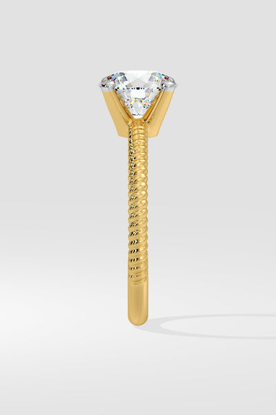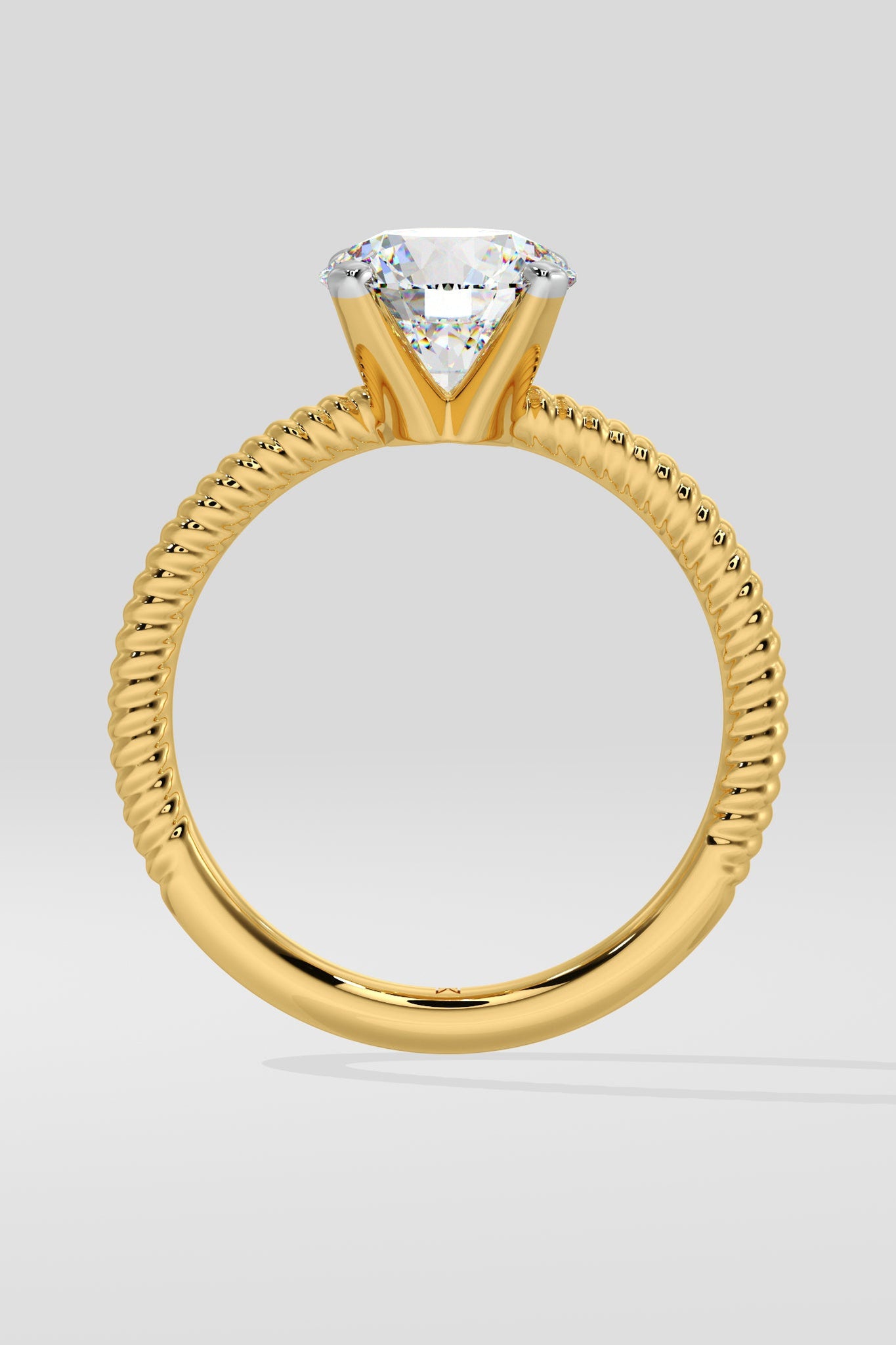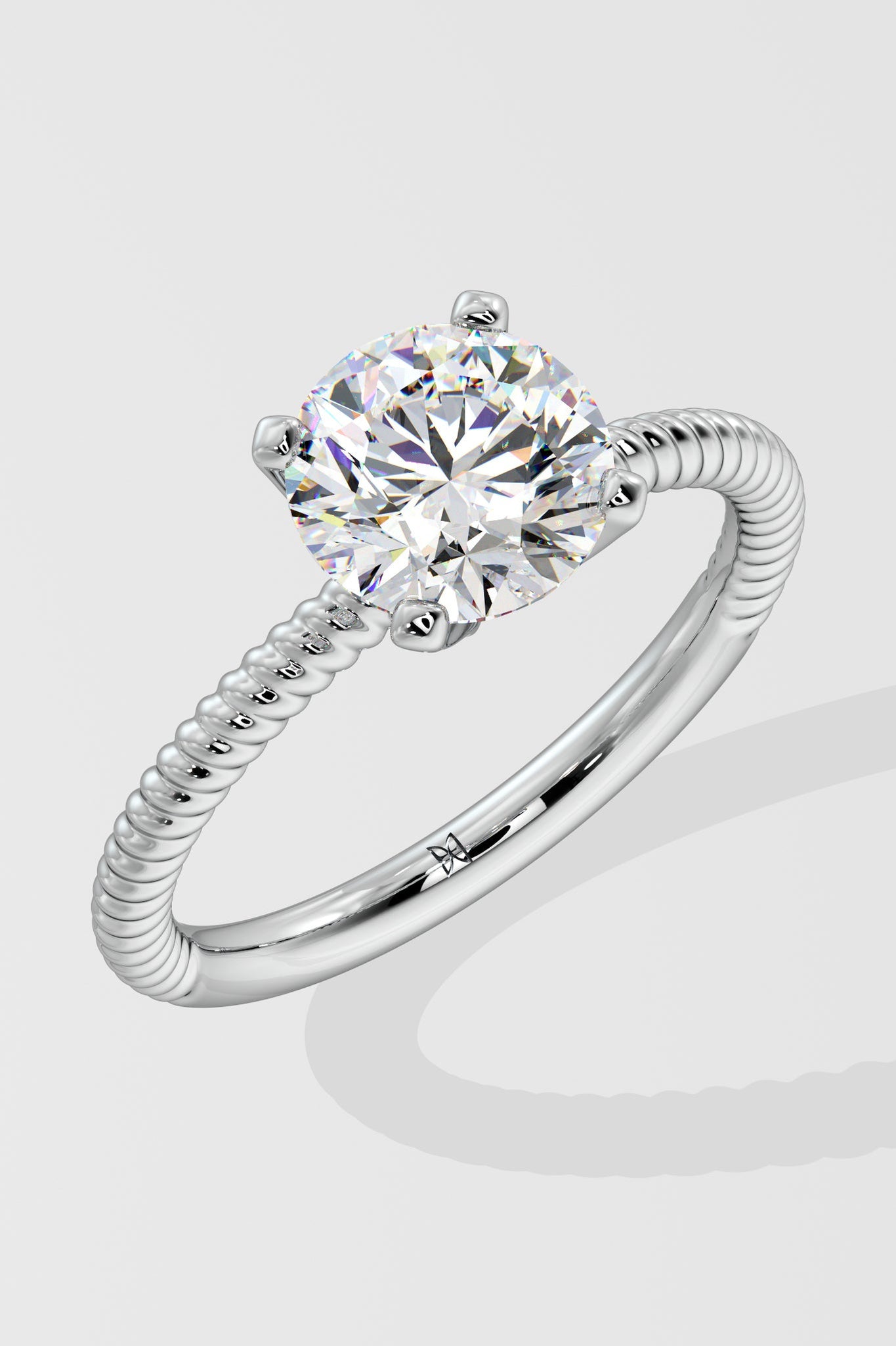 Lab Grown Diamond Braid Solitaire Ring featuring a 1.5 ct center stone set on a beautifully weaved band. The band is minimal yet tasteful, adding just the right touch of design to highlight your solitaire. Customize the look by choosing an Oval, Princess, or Cushion cut center.