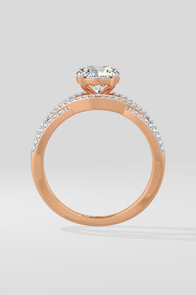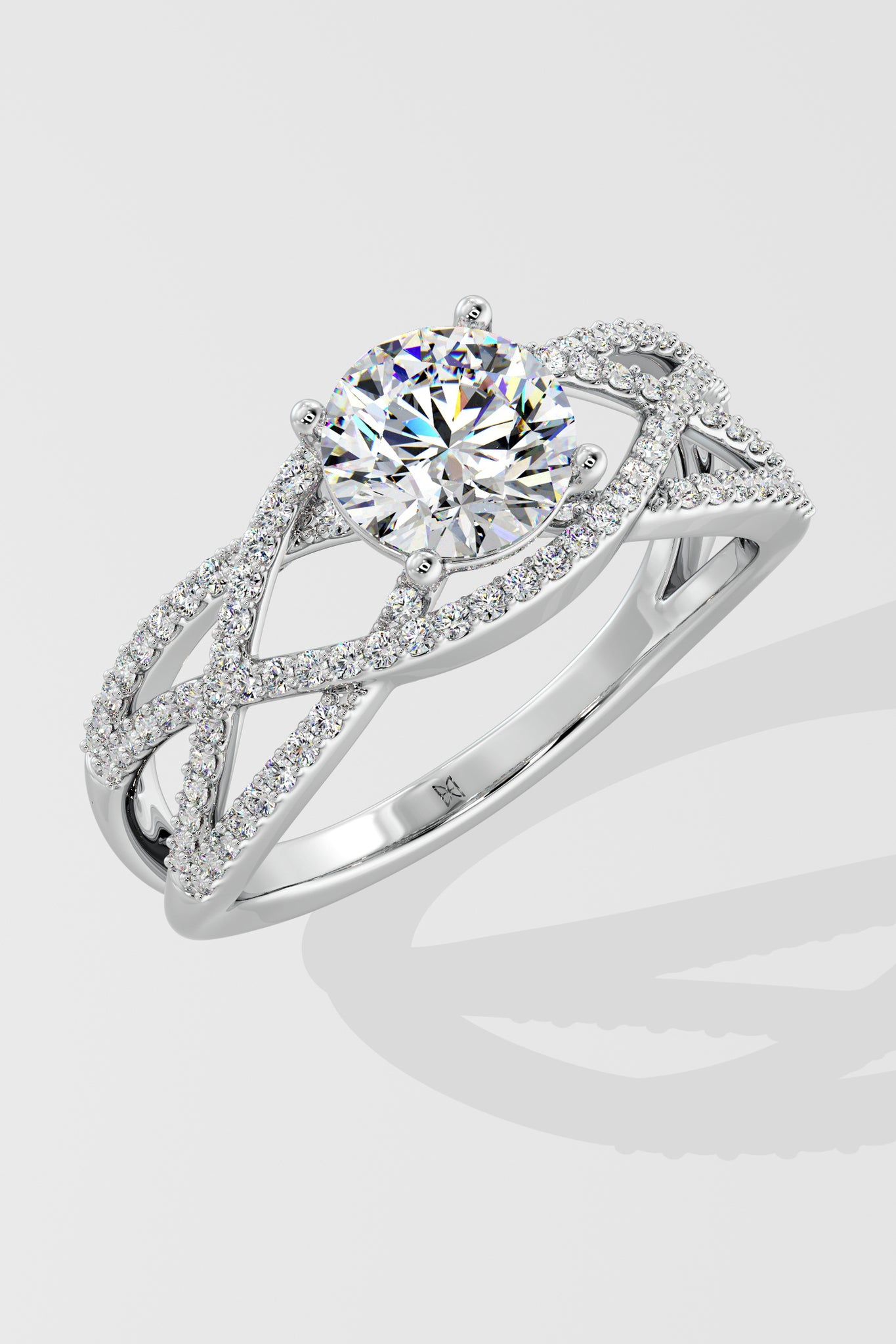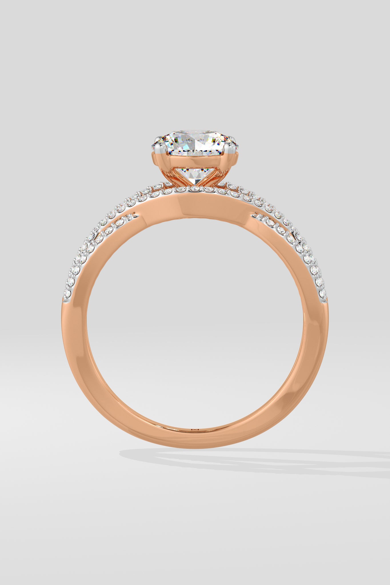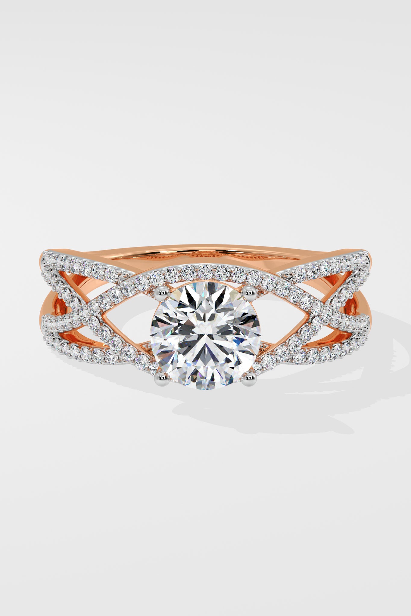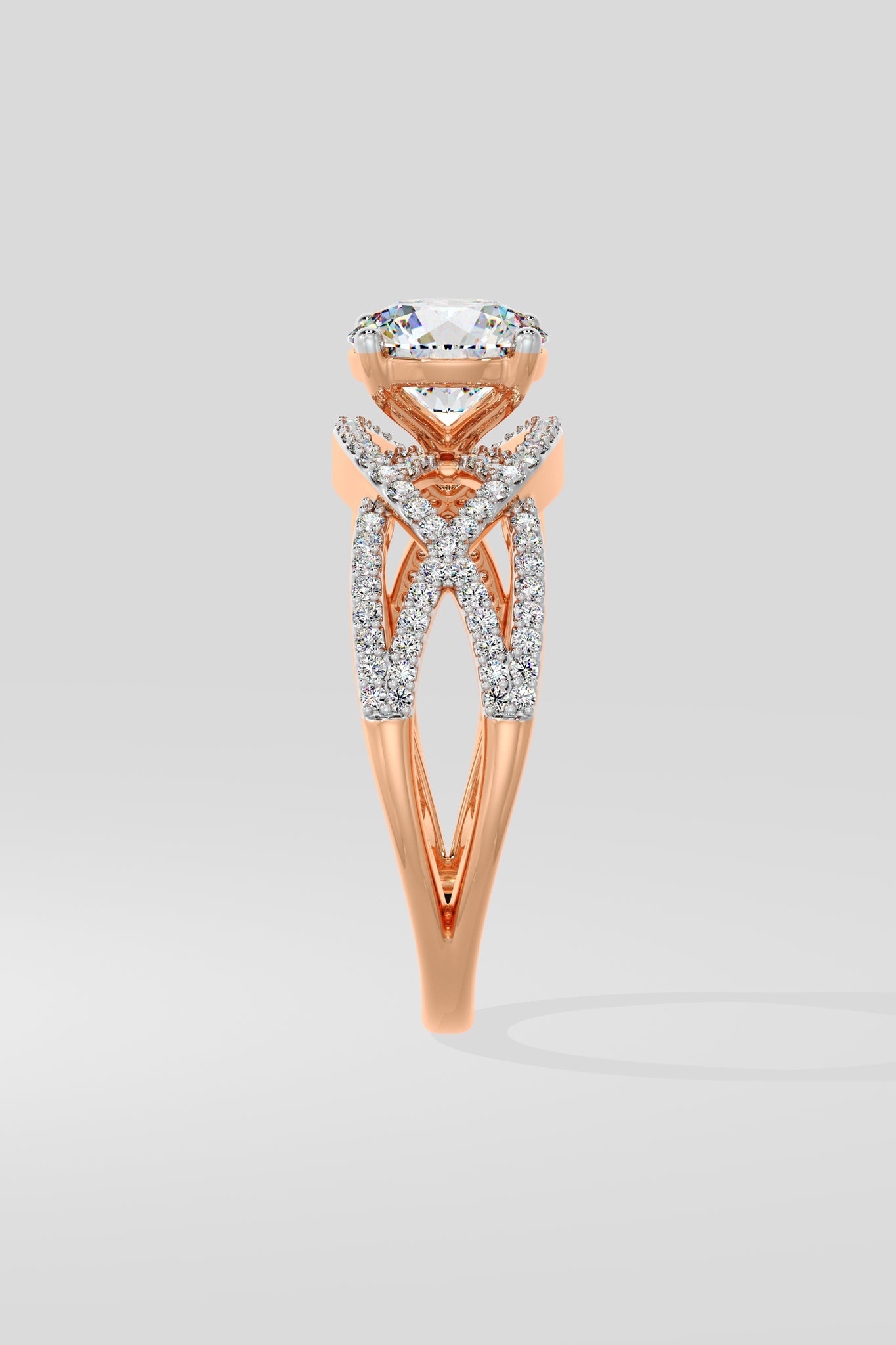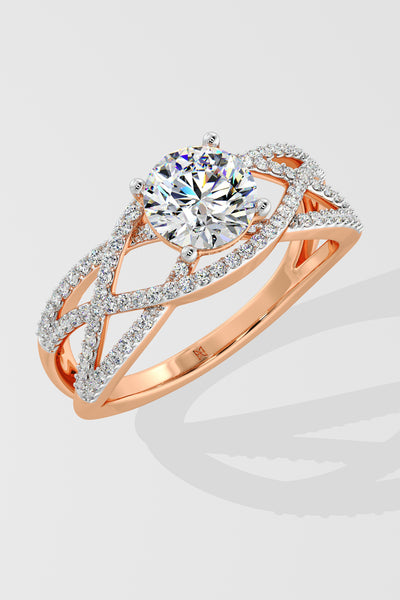 The Ripple Solitaire Ring features a stunning 1.5 Ct Center Diamond, surrounded by a ripple-inspired design that is charming. Its graceful details create a dreamy look.