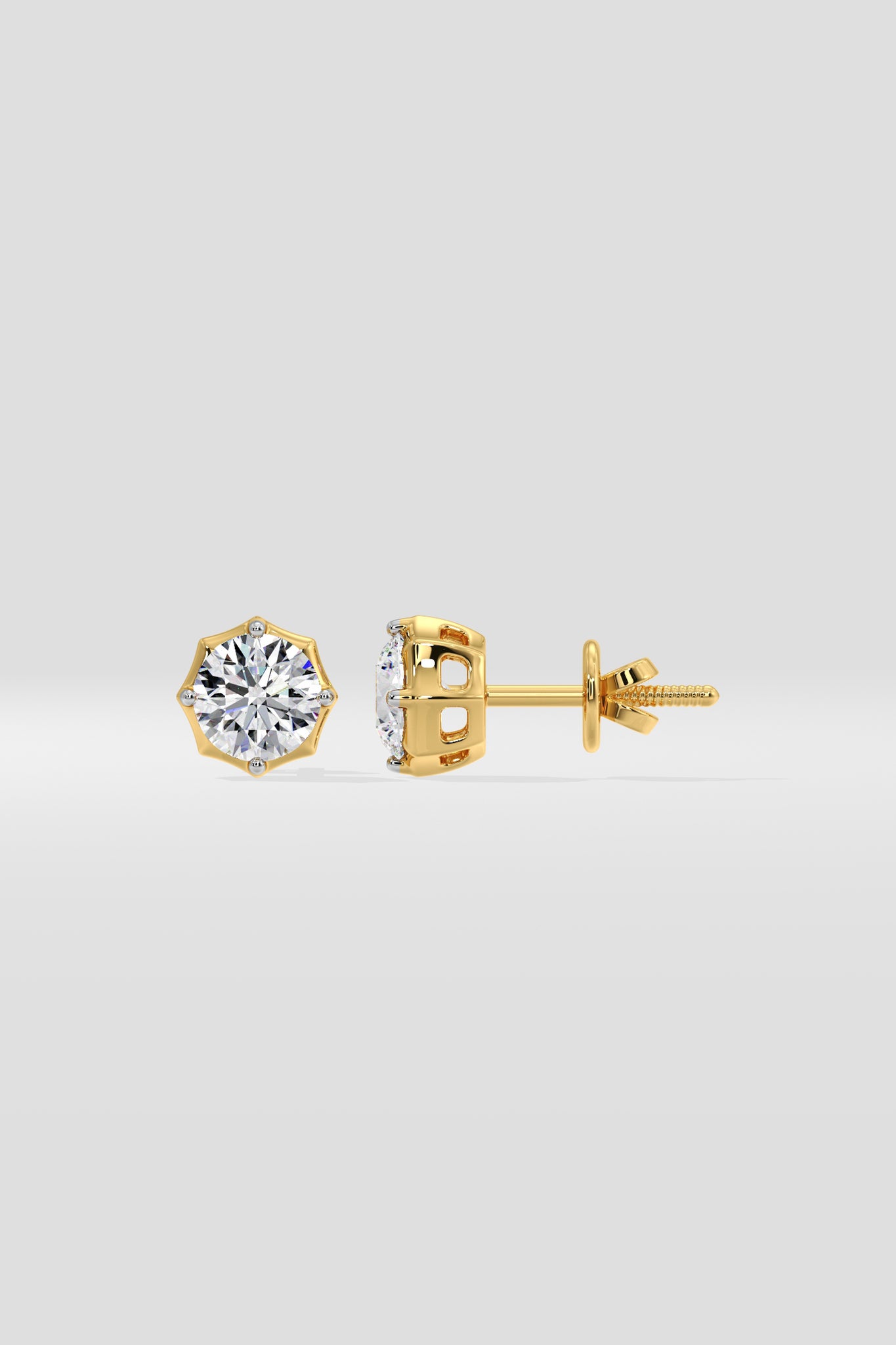 Add a modern flair to your look with our 1 ct Octave Studs, featuring classic 0.50 ct round solitaires. These earrings combine classic elegance with contemporary design for a classic everyday style statement.