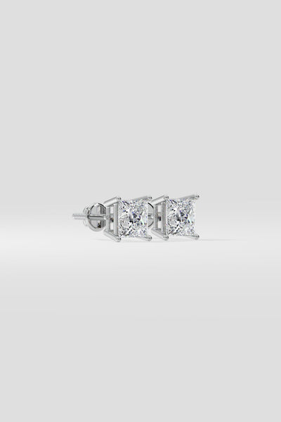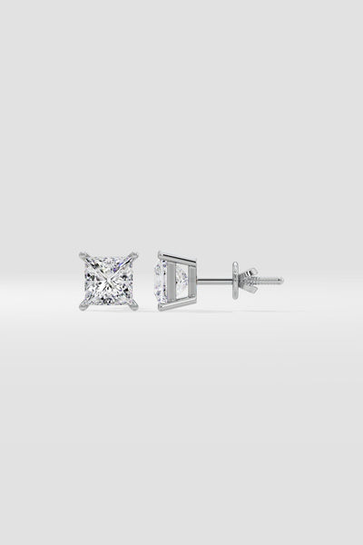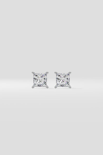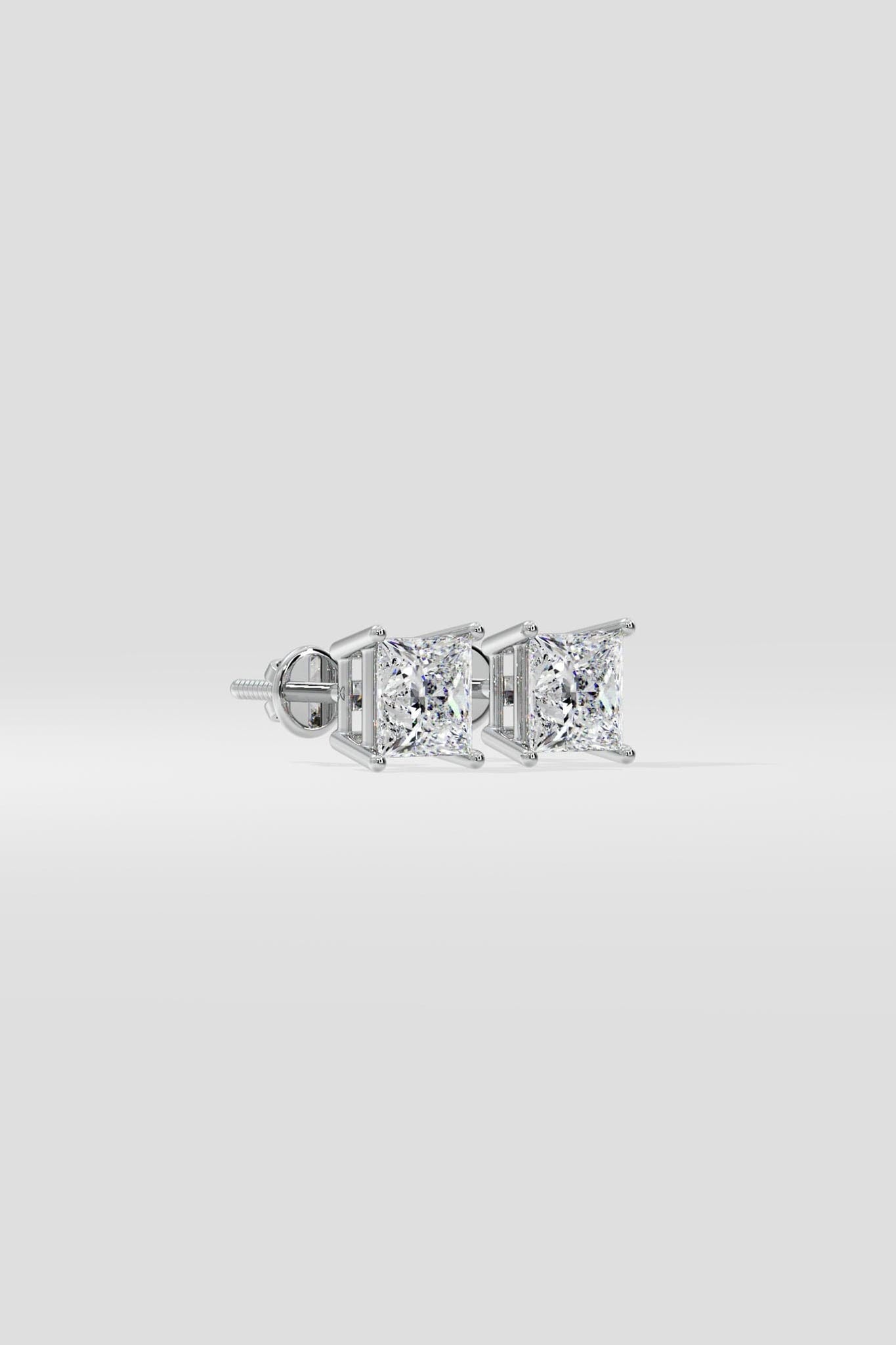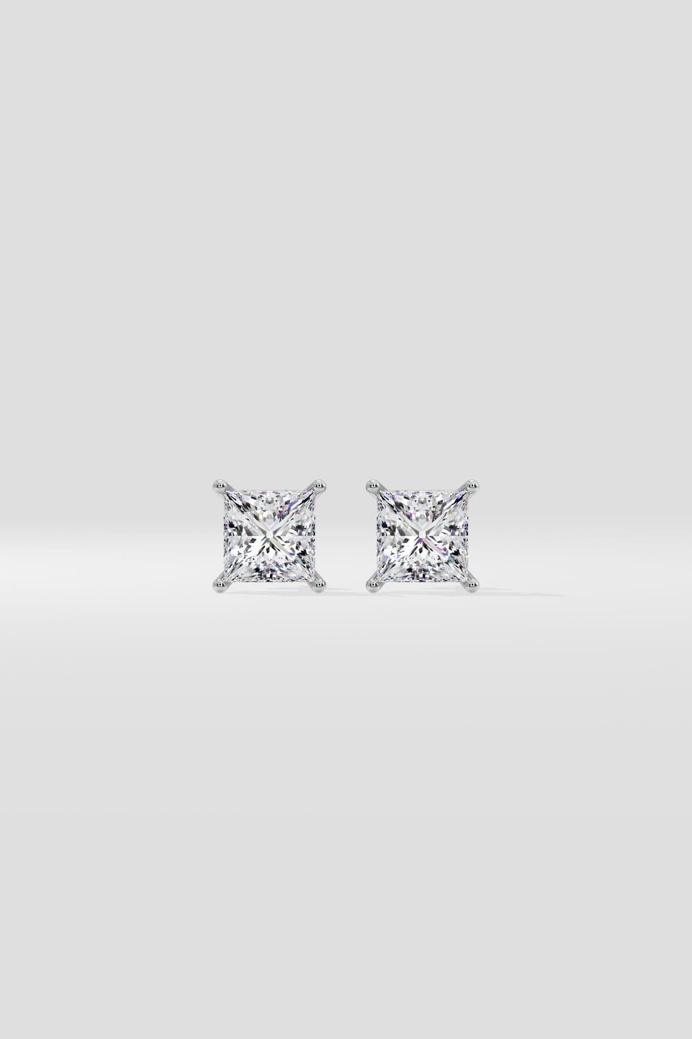 The 1 ct Princess Studs feature two 0.50 ct princess-cut diamonds set in classic 4-prong settings. Clean lines and sharp edges give them a modern, polished presence.