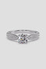 The 1 ct Sienna Ring features a stunning round-cut diamond at its centre, held by a delicate four-prong setting for maximum brilliance. The shank is adorned with pave-set diamonds, adding a touch of glamour and sophistication.