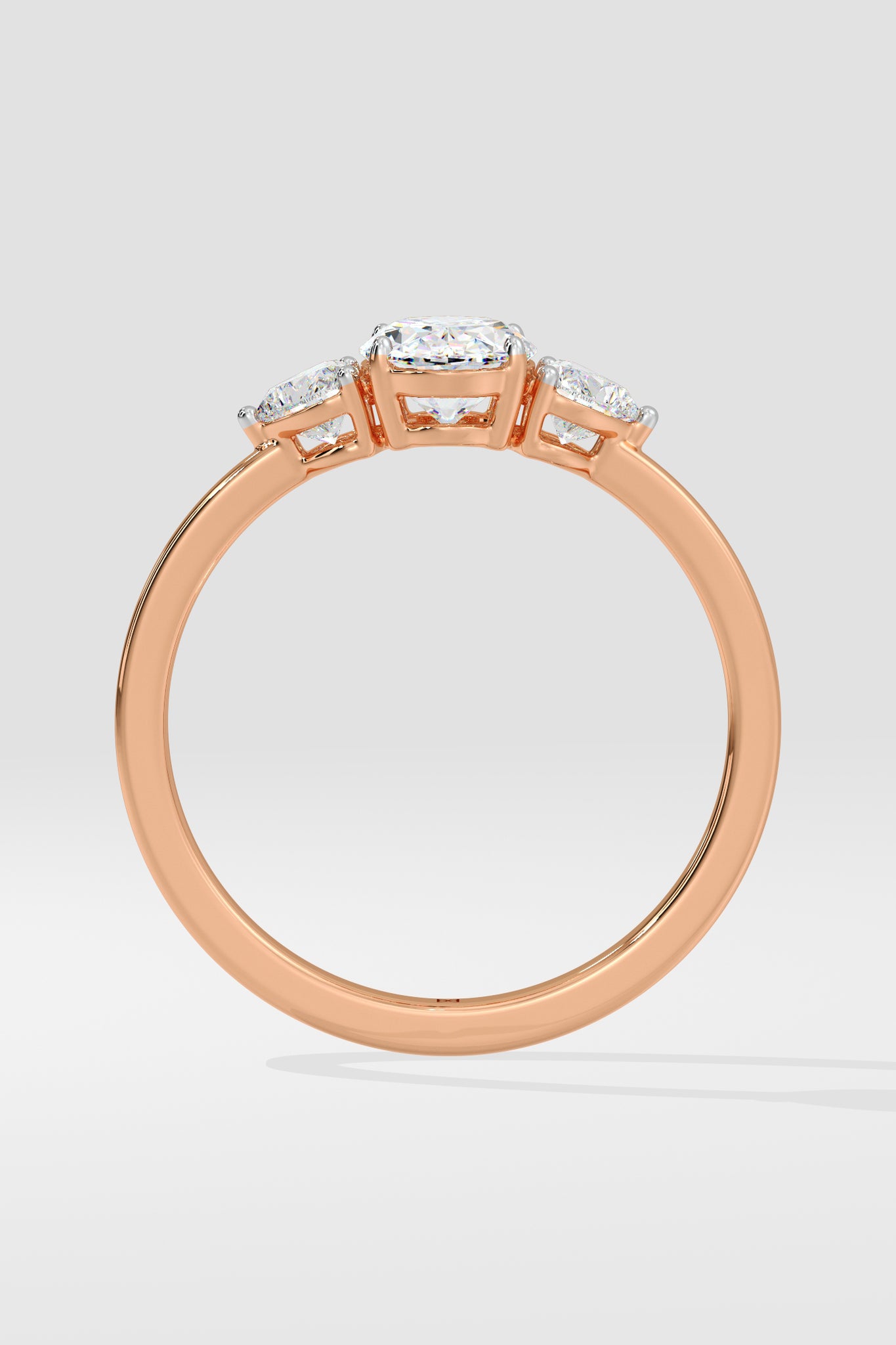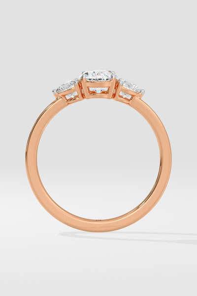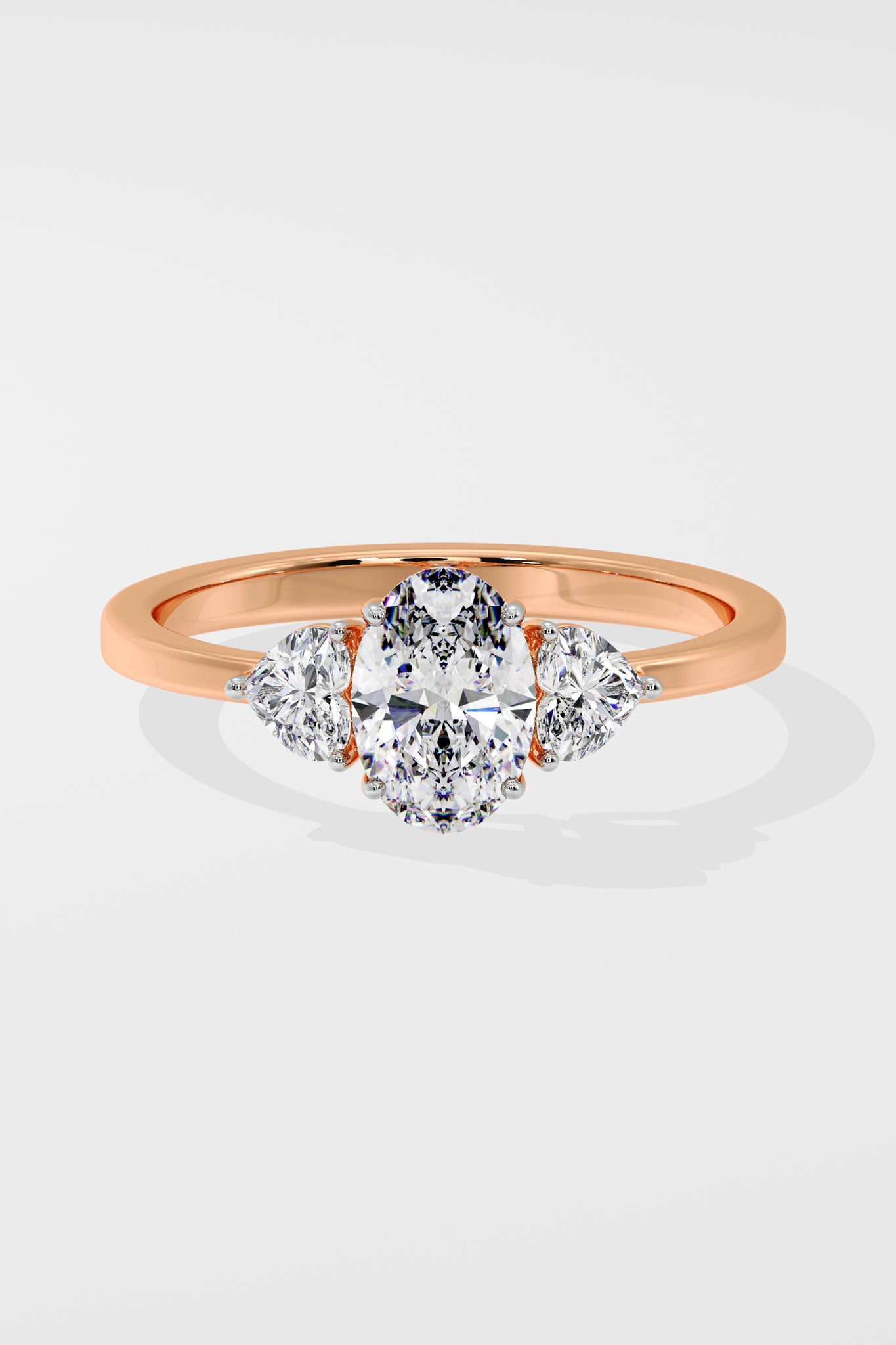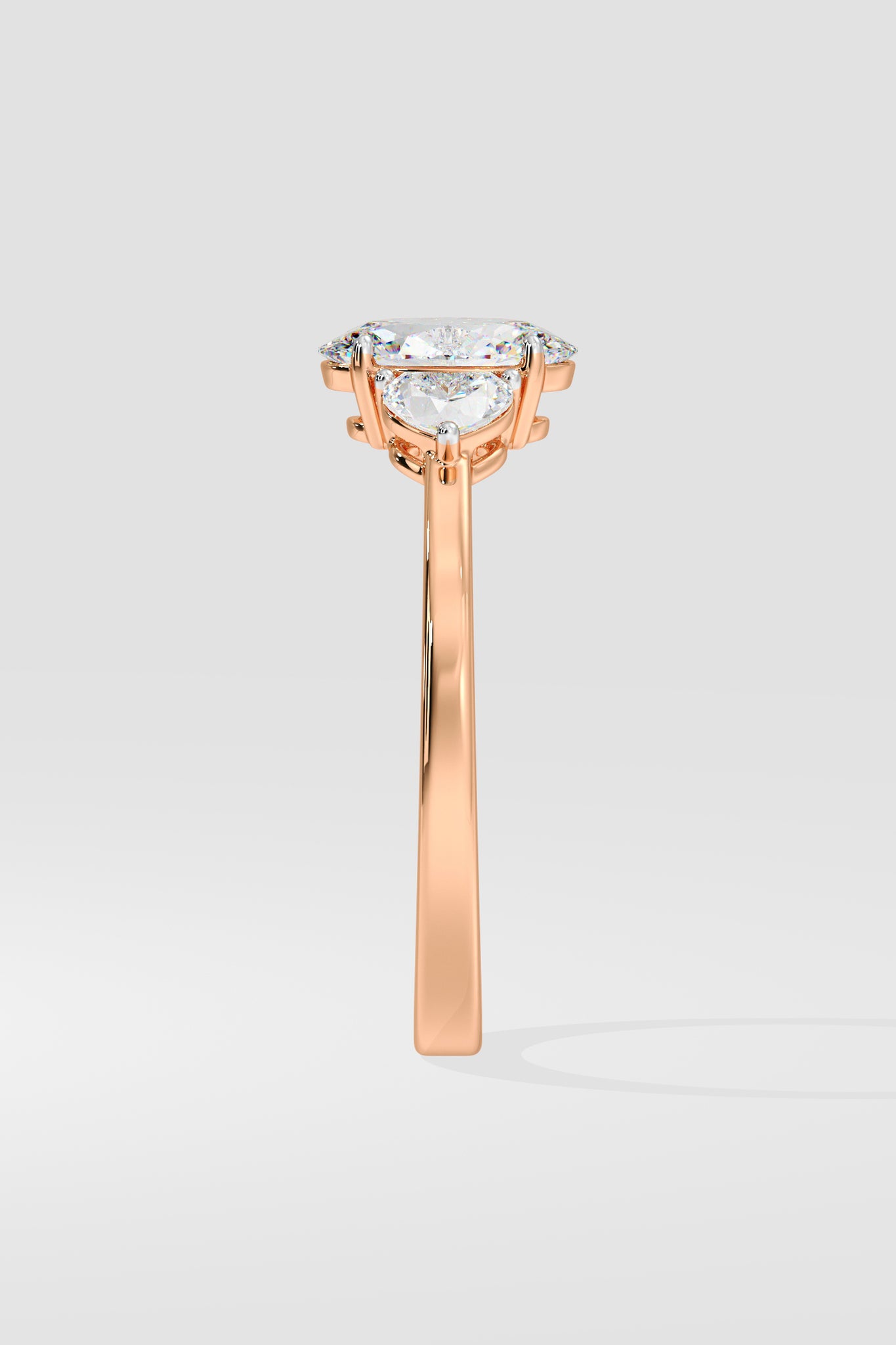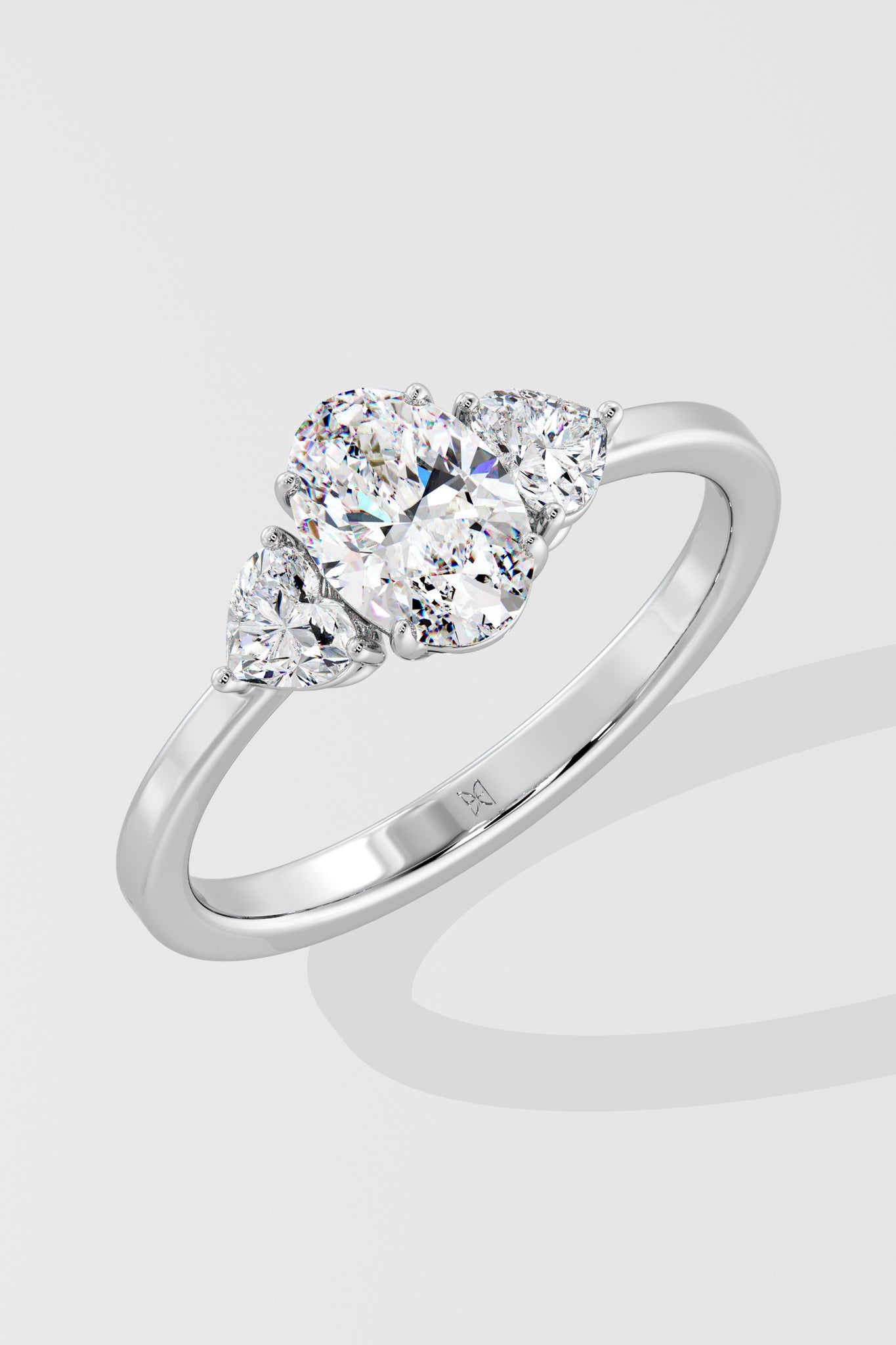The Trillium Oval ring features a 1 carat centre, elegantly flanked by two beautiful heart diamonds. A contemporary extension of the classic 3 stone ring, with a sleek gold band. The 3 stone series signifies the past, present and future.