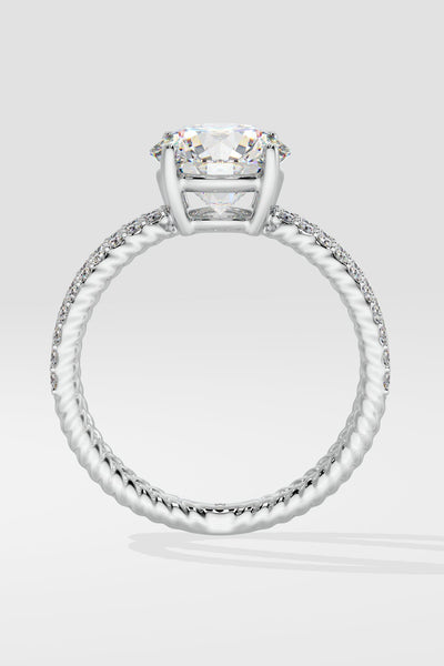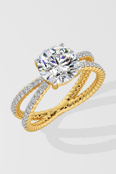 Lab Grown Crossover Solitaire is a modern favourite. It features a bold 2 Ct center diamond with perfectly balanced studded shanks. Beyond the studded shank the wire/cable mesh look continues all the way to the base. The centre diamond can be customised to go bigger/smaller along with your choice of gold colour.
