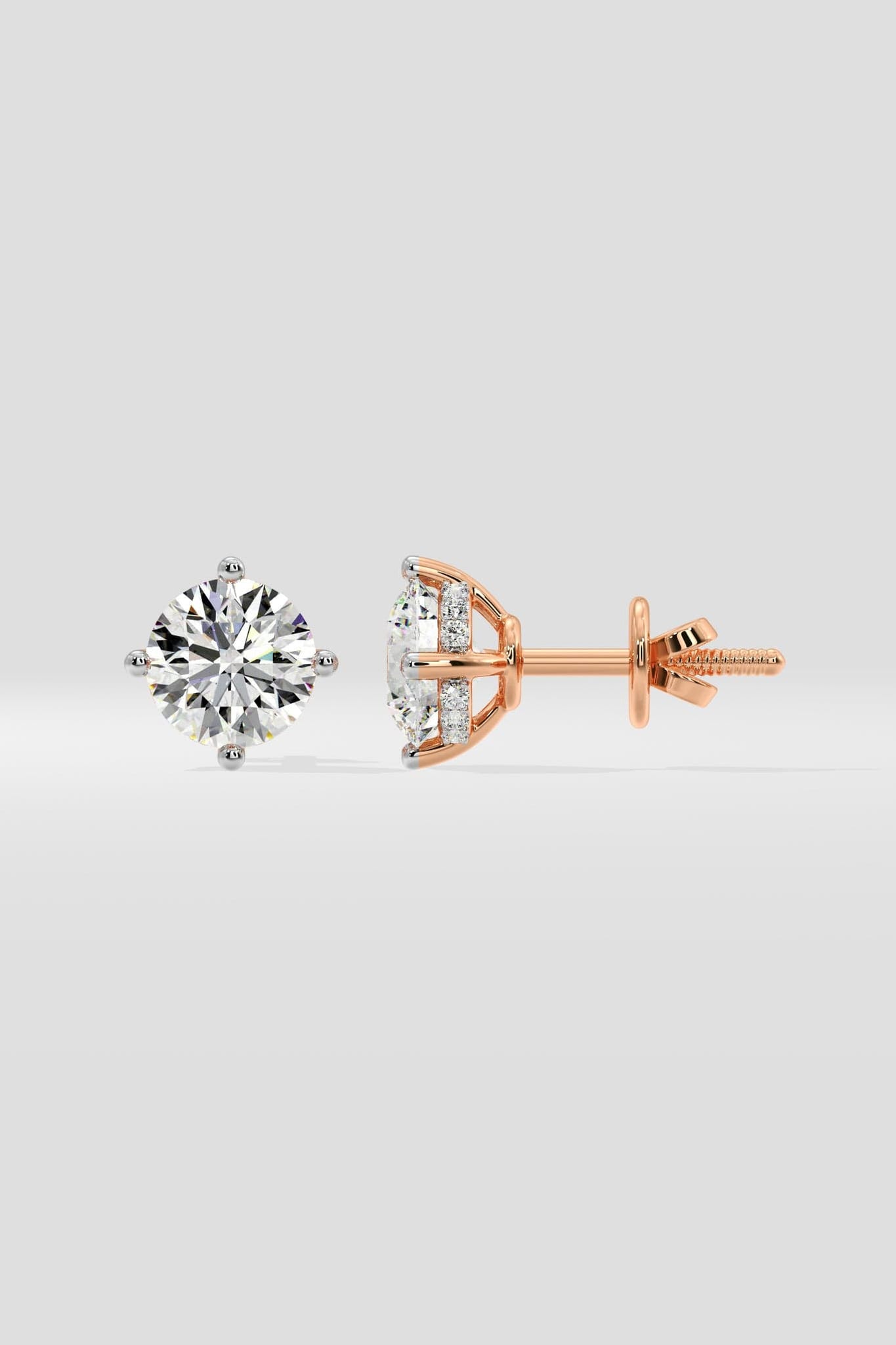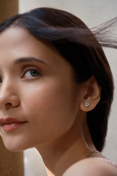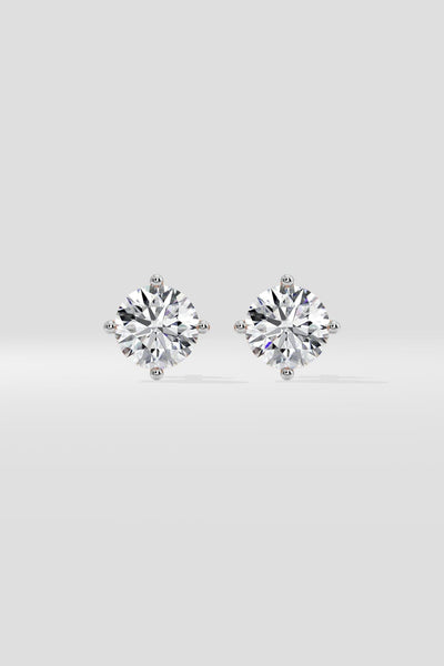 2ct Invisible Halo Solitaire Earrings, featuring a stunning 1ct solitaire diamond at the centre with a seamless invisible halo. The solitaire is held by four prongs.