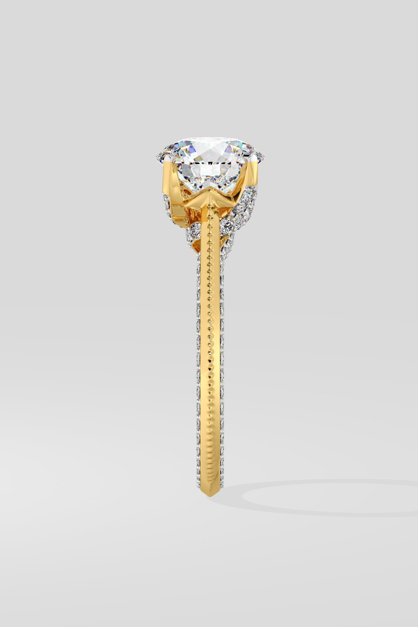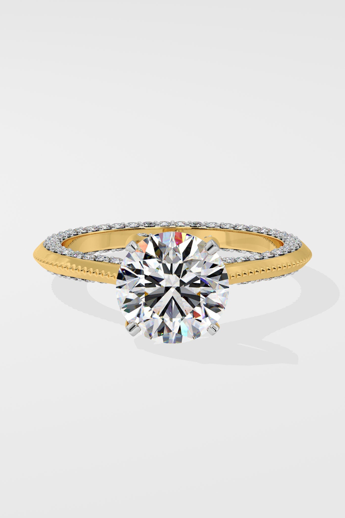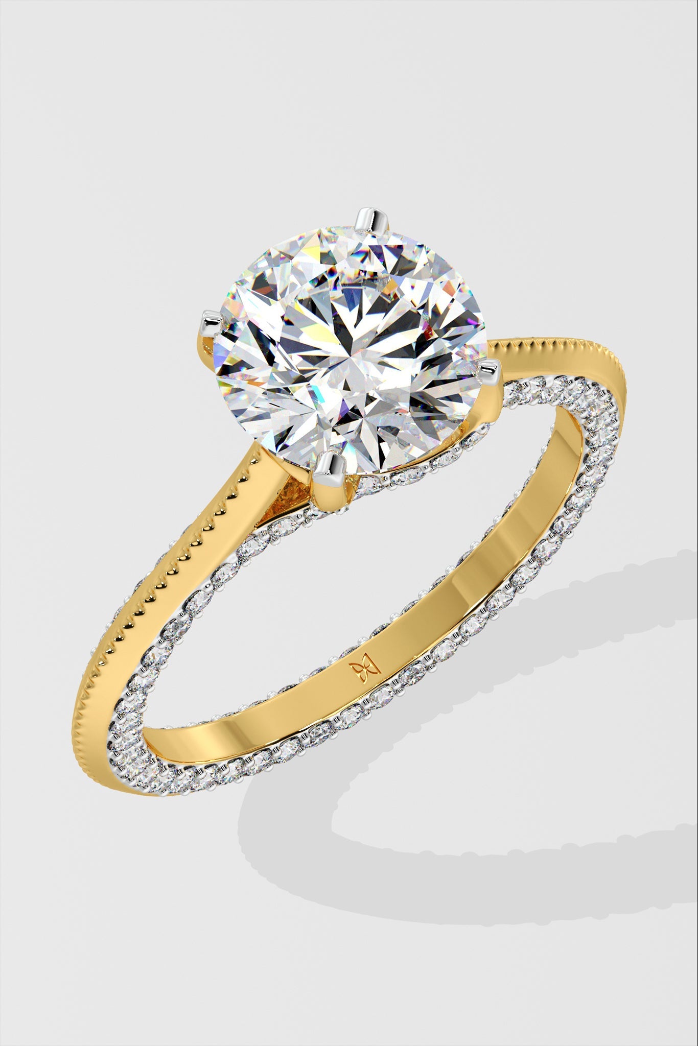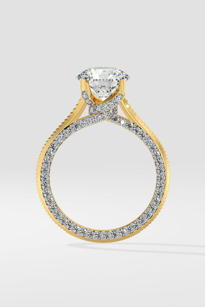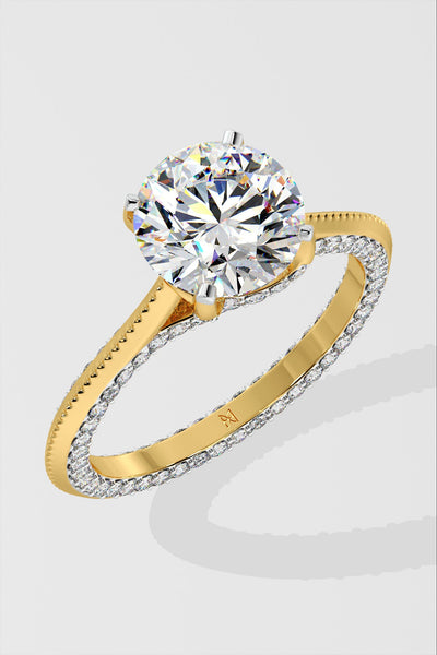 Lab Grown Diamond Willo Solitaire Ring featuring a dazzling 1.5 ct center stone. Its distinct charm lies in the delicate diamond line gracing the face of the shank, crafted with immaculate precision. An exquisite choice for an engagement or anniversary ring.