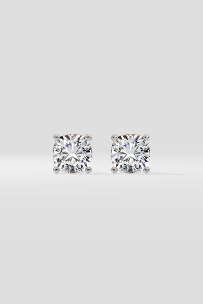 3 ct Cushion Solitaire Studs feature 1.5 ct stones each in a flat back setting. They sit comfortably on the ear, making them ideal for daily wear. The cushion shape is a modern favourite, a perfect balance between the sparkle of the round and charm of the princess.