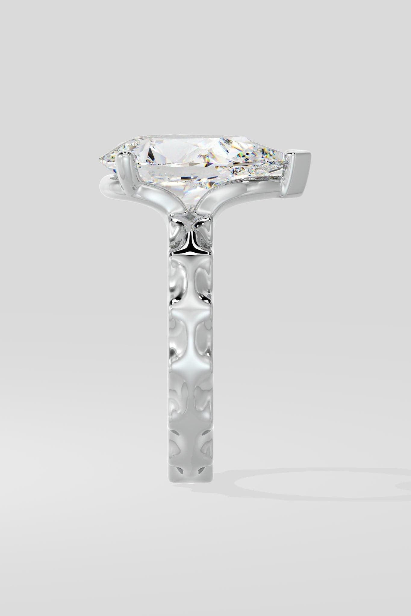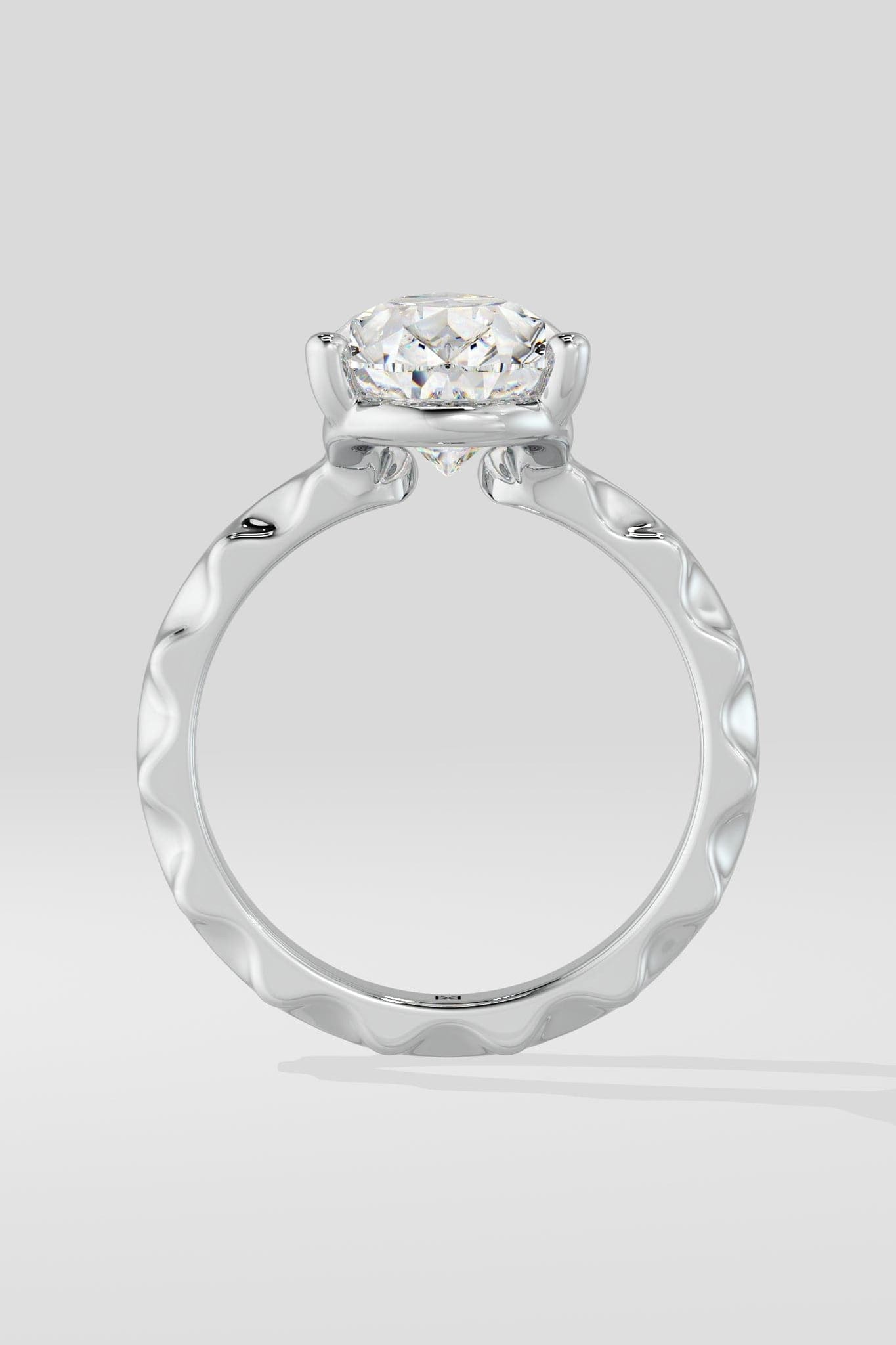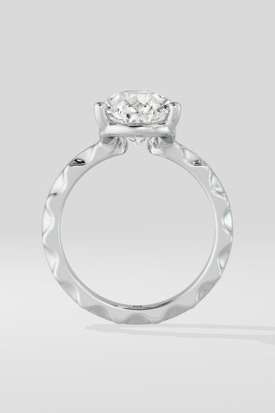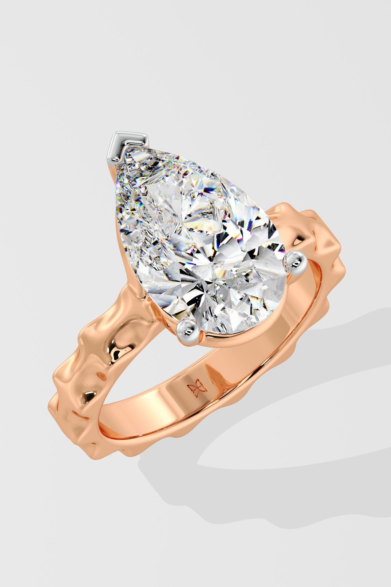 Featuring a stunning 3-carat pear-shaped diamond at its center, the Inegale ring is set on a distinctive hammered band that adds texture and individuality. The stand out shank combine with the dazzling pear makes this one of a kind.