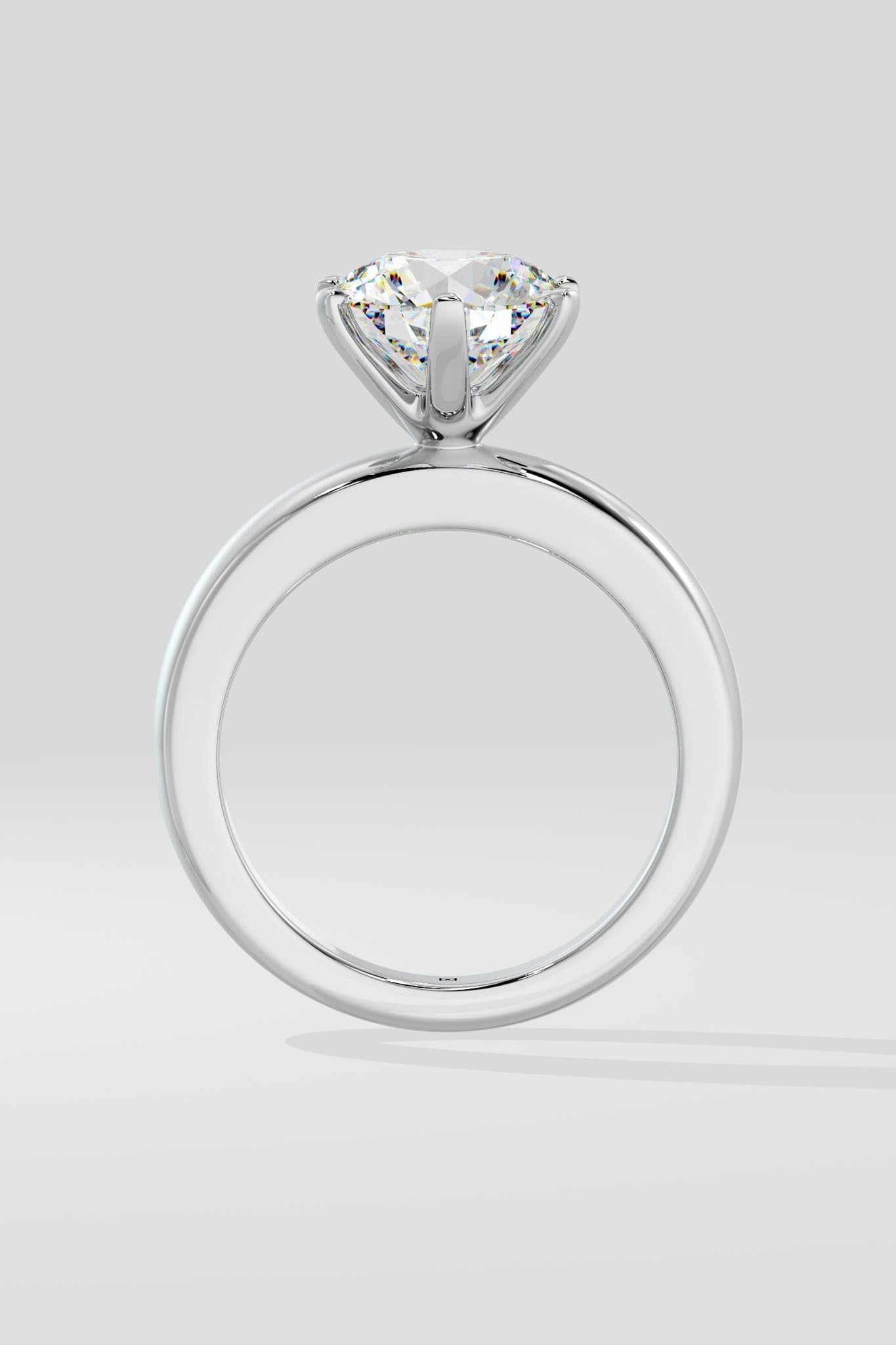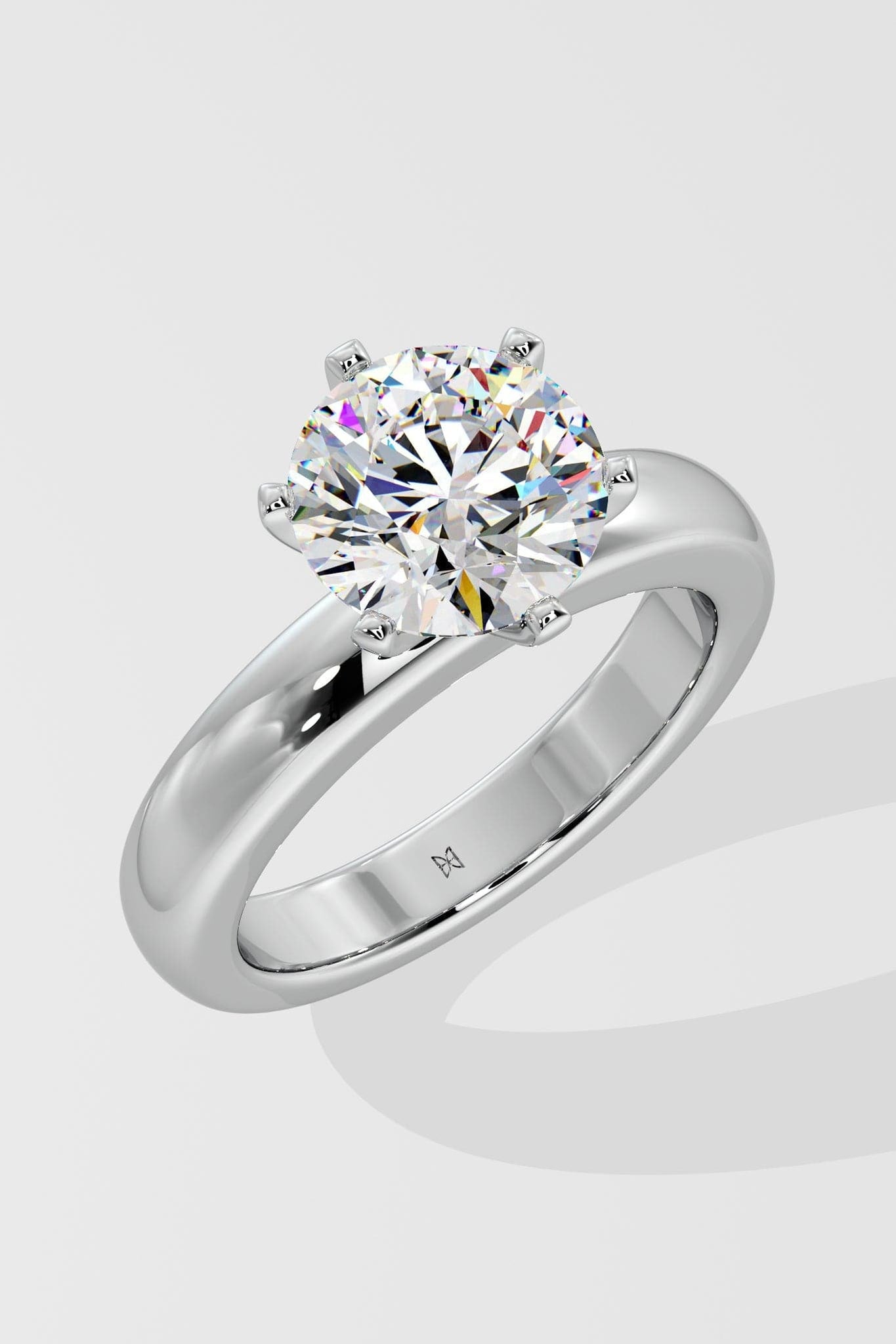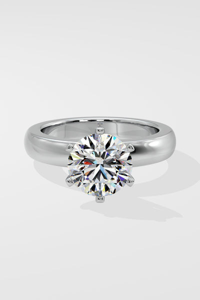 A stunning 3 Ct Wide Band Solitaire Lab Grown Diamond Ring with a secure 6-prong setting, showcasing a brilliant center diamond. The substantial, comfortable band is available in all 3 gold colour options. A bolder band for your bold solitaire.