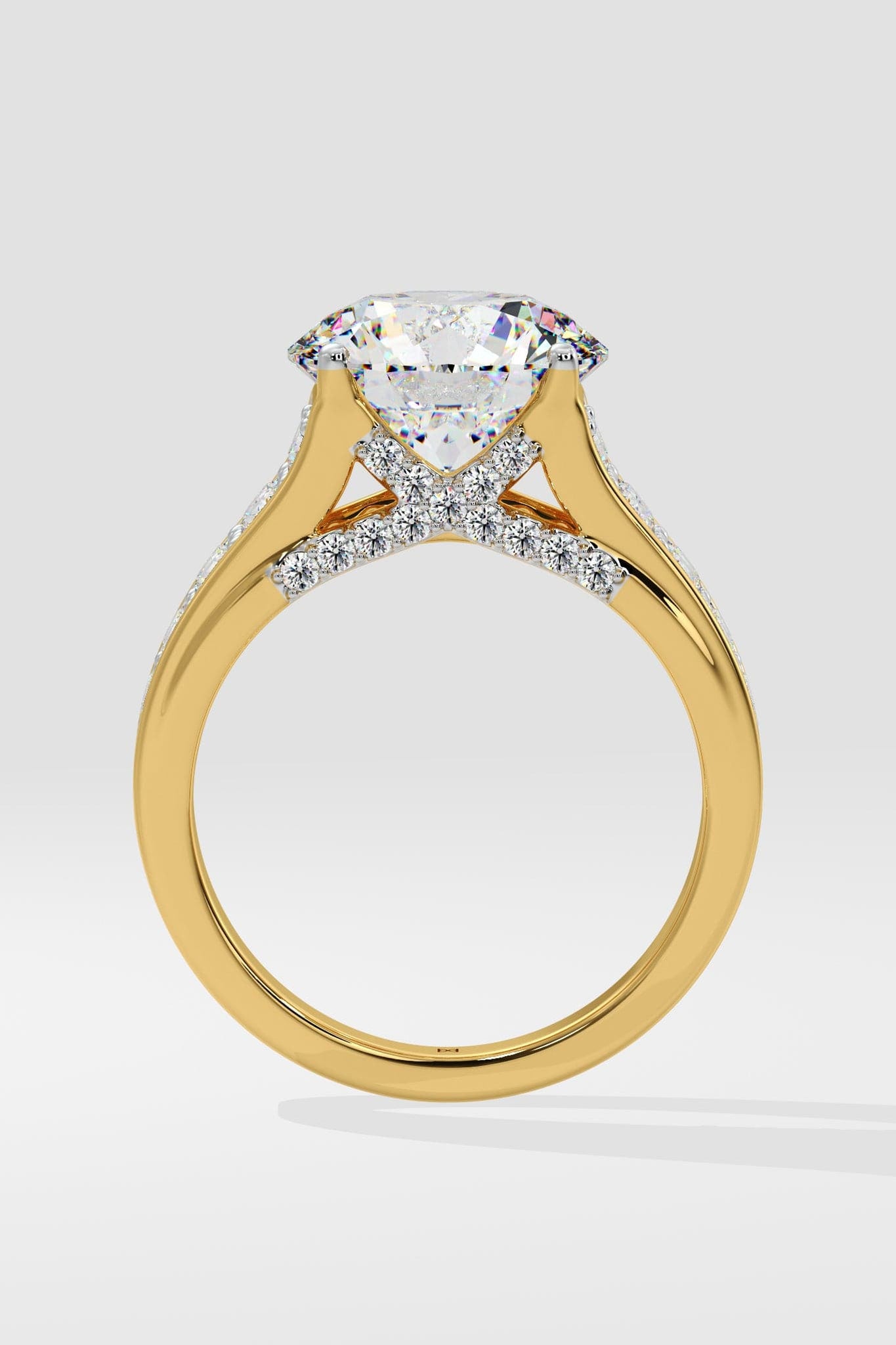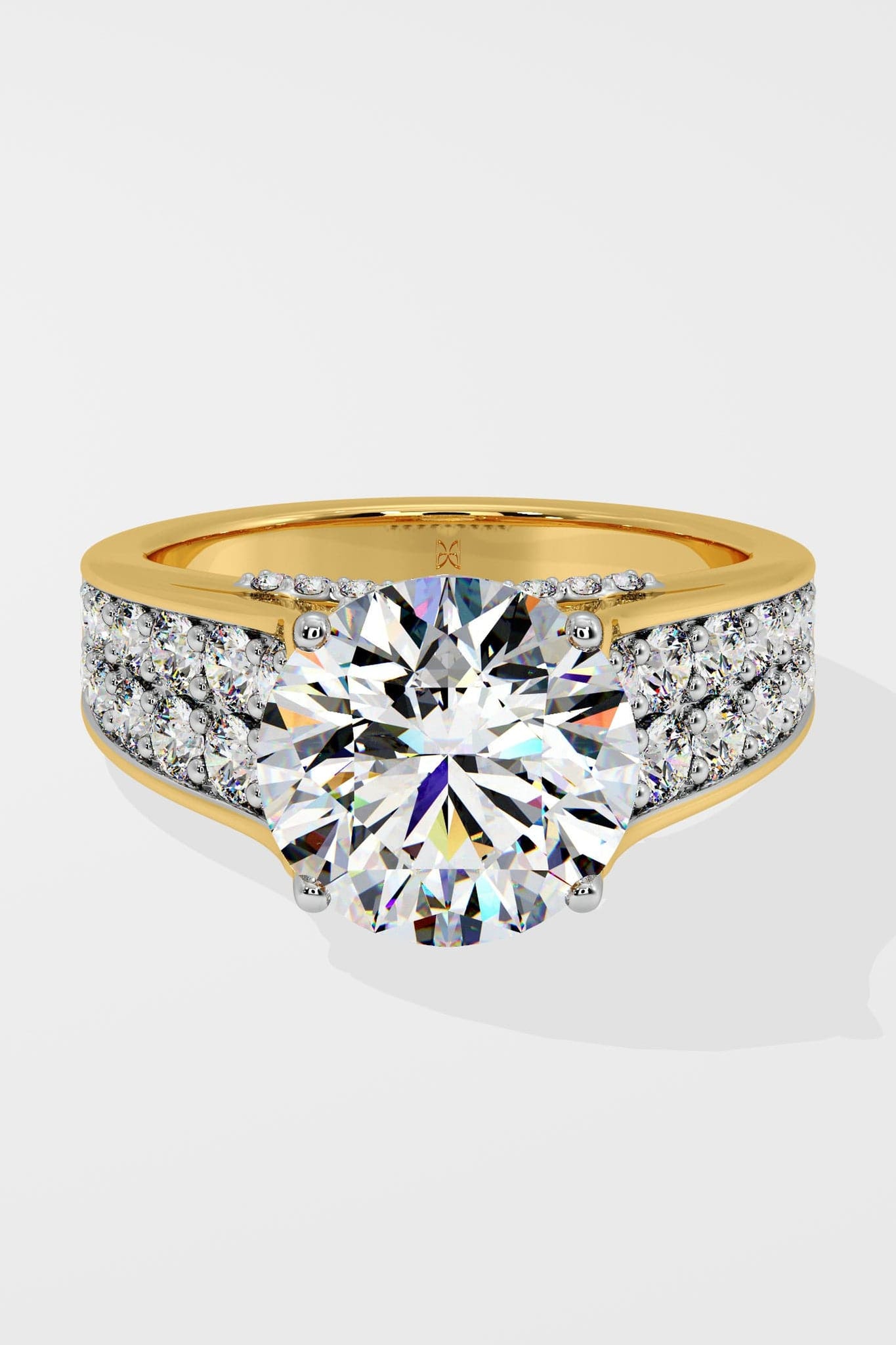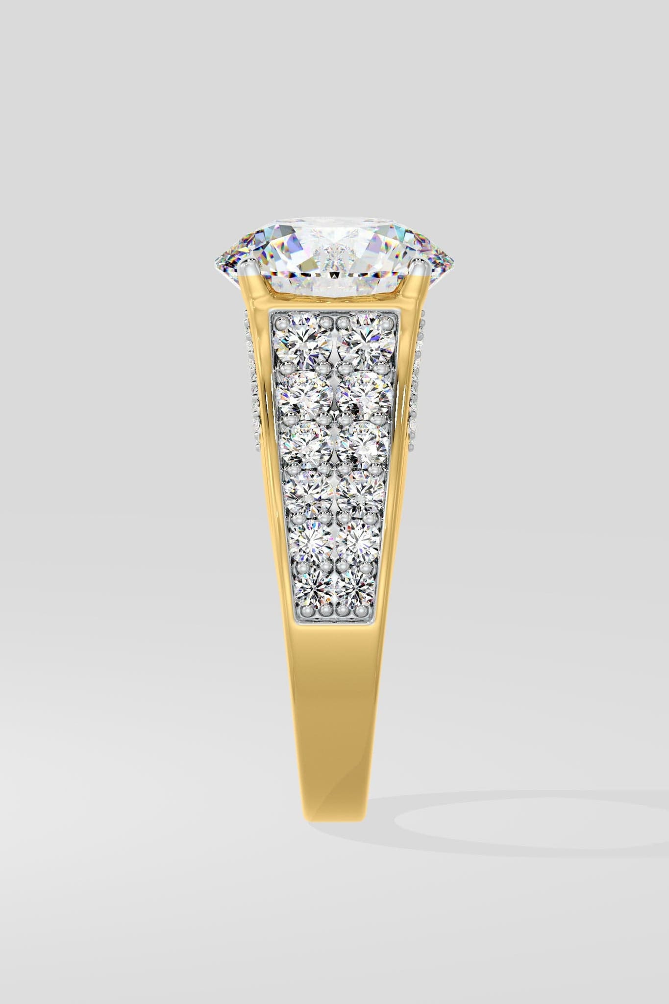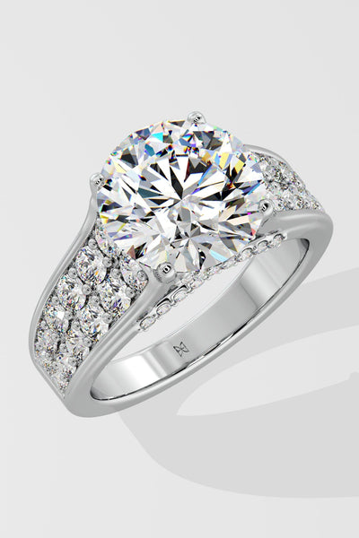 The 4 ct Ardito Solitaire Lab Grown Diamond Ring showcases a stunning 4 ct solitaire, complemented by bold side bands with two rows of pave-set diamonds. Its striking design exudes confidence and elegance, perfect for making a statement.