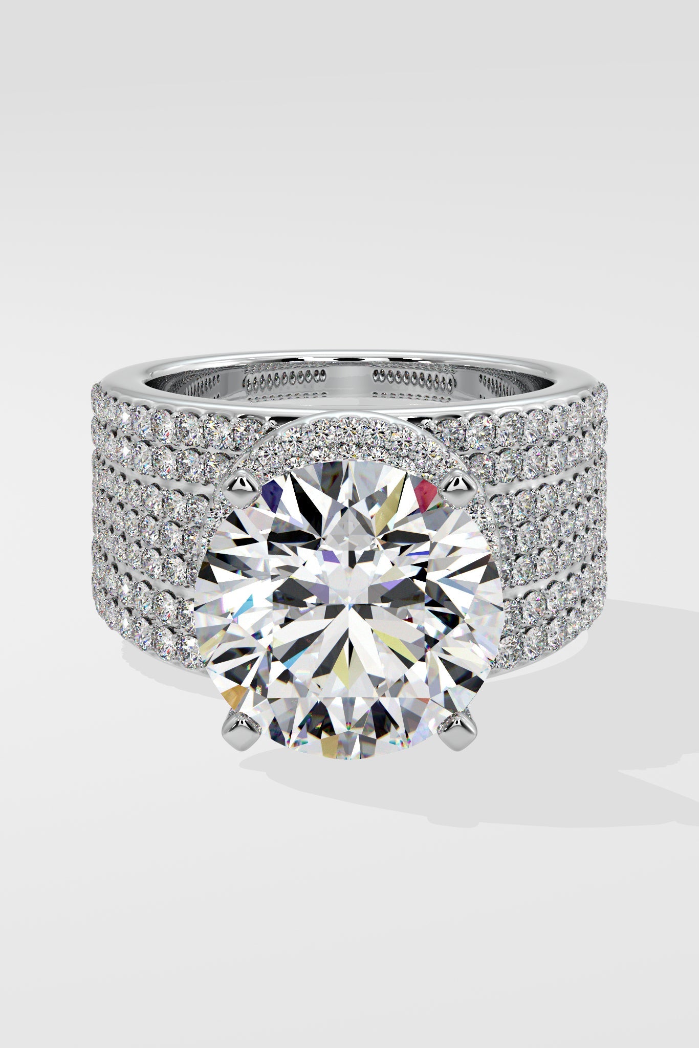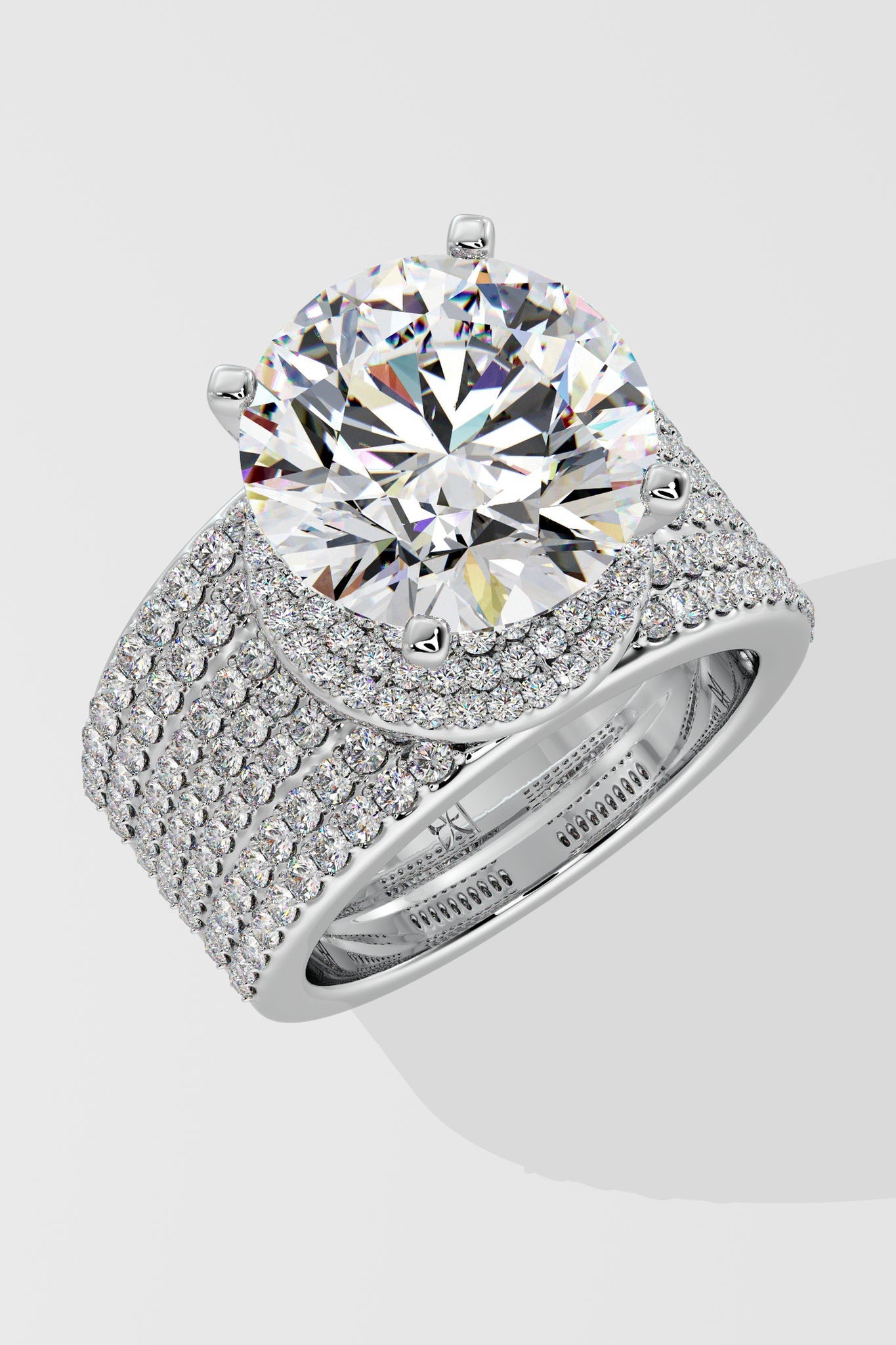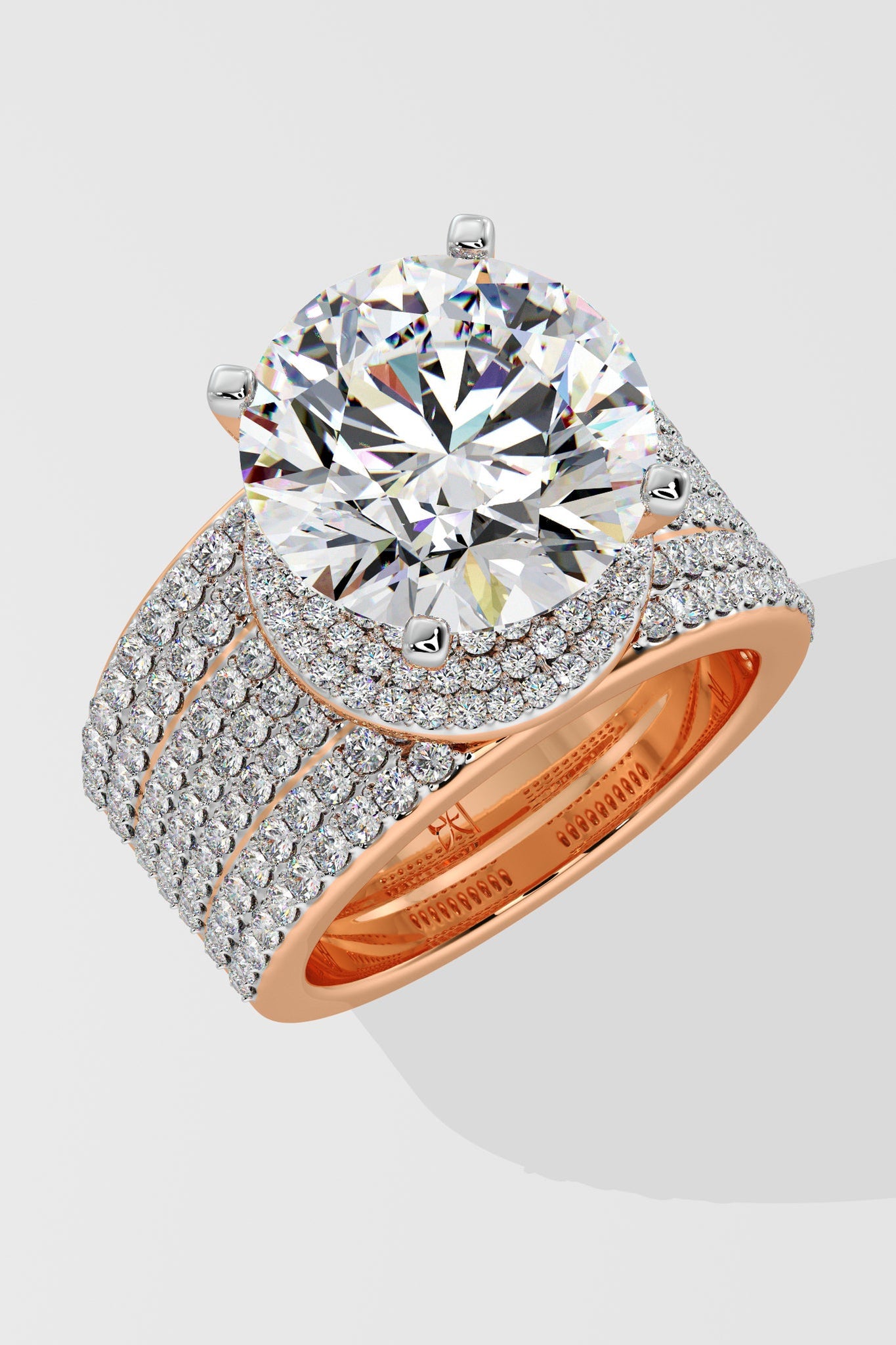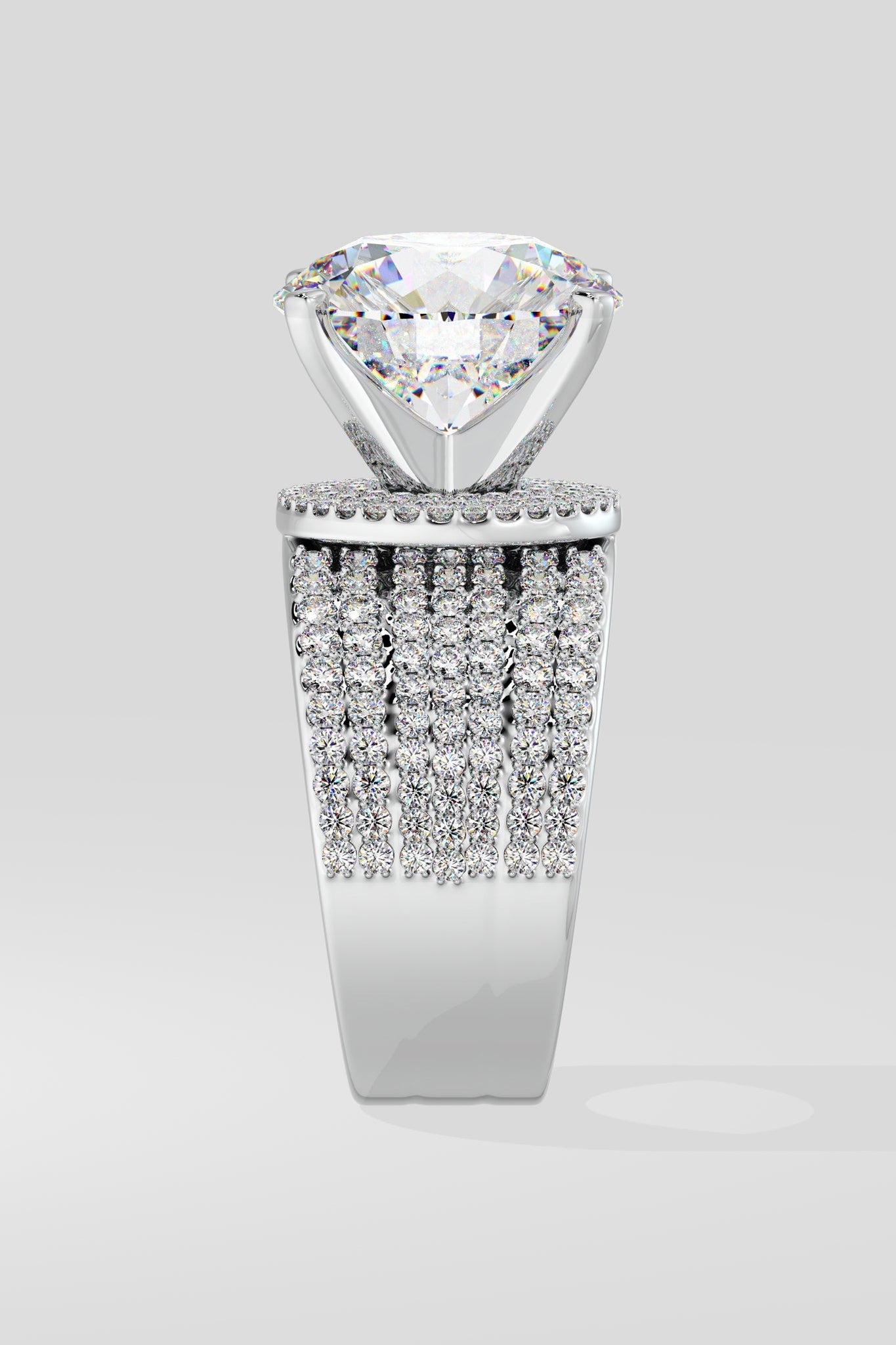 The Dialuxe Ring is a marvel of light, featuring a breathtaking 5 ct Lab Grown diamond solitaire at its centre. A bold 7-row wide studded band adds to its allure, making this piece the ultimate showstopper. Luxury, grandeur, and opulence, this ring is designed for the select few who dare to shine brightest.