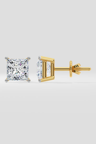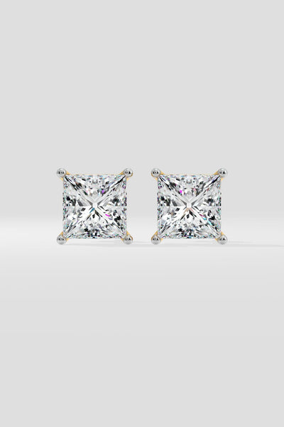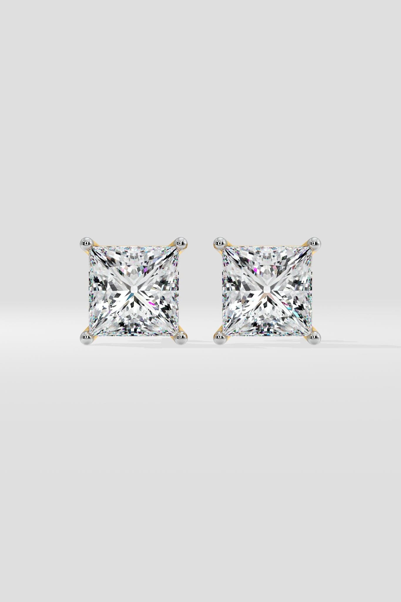 The classic Princess studs, set in 4 prongs are 3 ct each diamond. Princess has a bolder, edgier look and breaks away from the classic round to make a stronger yet classic statement. Princess continues to hold high sparkle and combines everyday work and play effortlessly. Customizable in rose or white gold options as well.