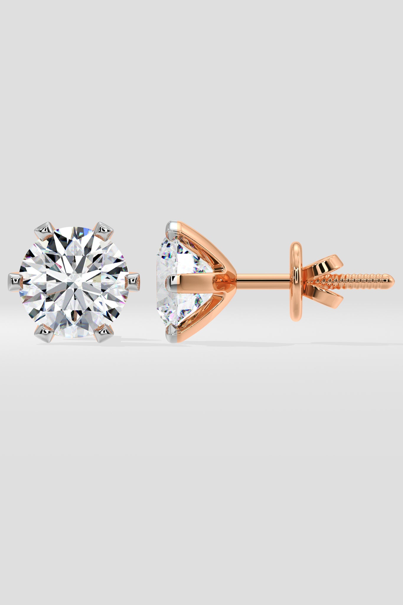 8 ct Solitaire Studs featuring 4 ct center diamonds in each ear, set in a six-prong conical setting that makes the diamond sit comfortably well. This classic design is a timeless favourite.