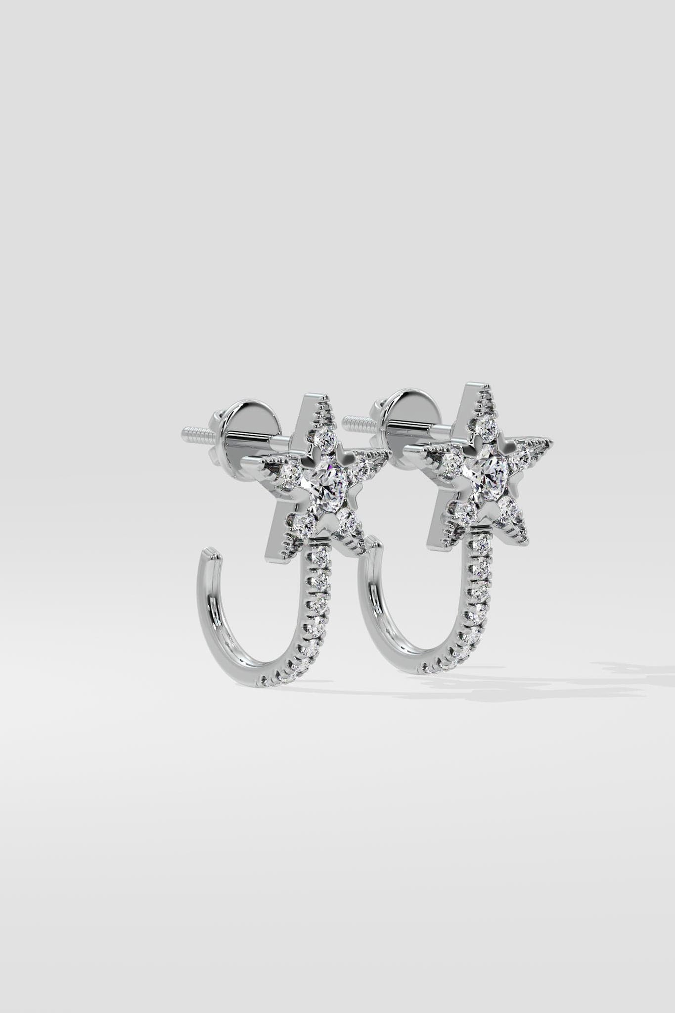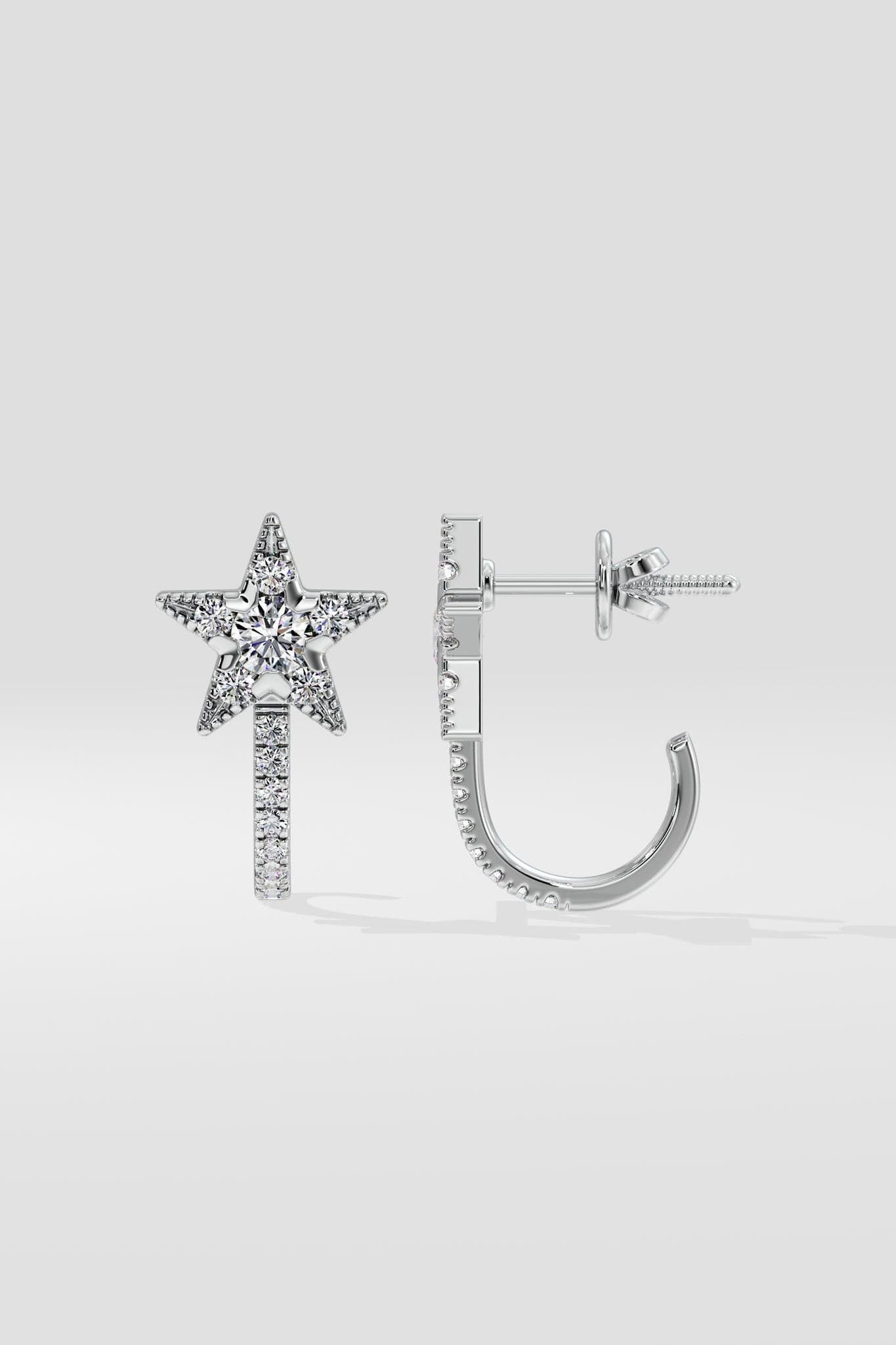 Celeste Star Huggies feature a diamond-studded star with a curved diamond-lined hoop. A sleek and stylish design for any occasion.