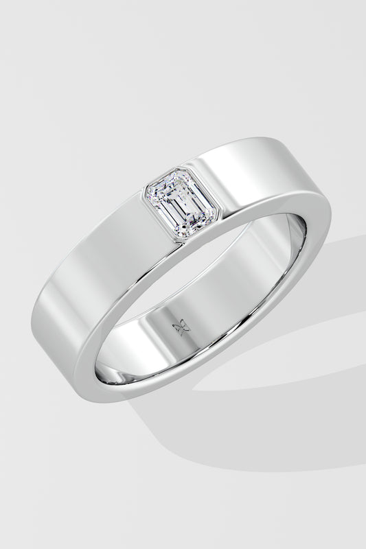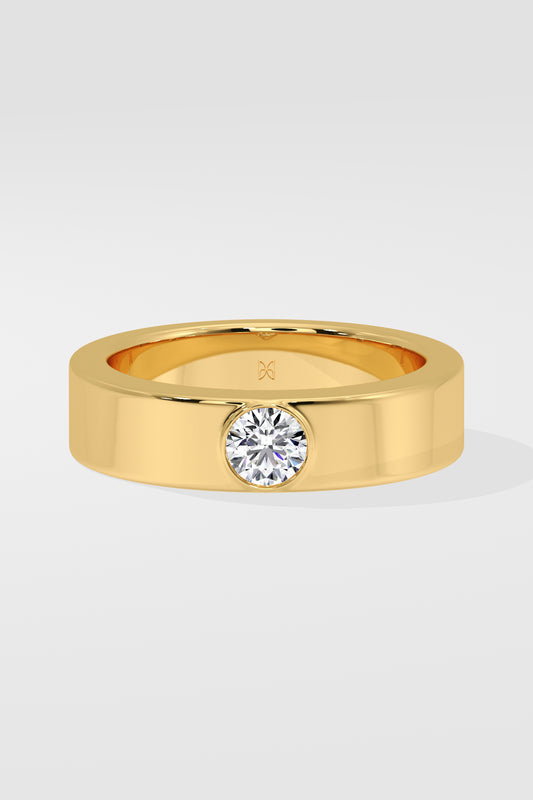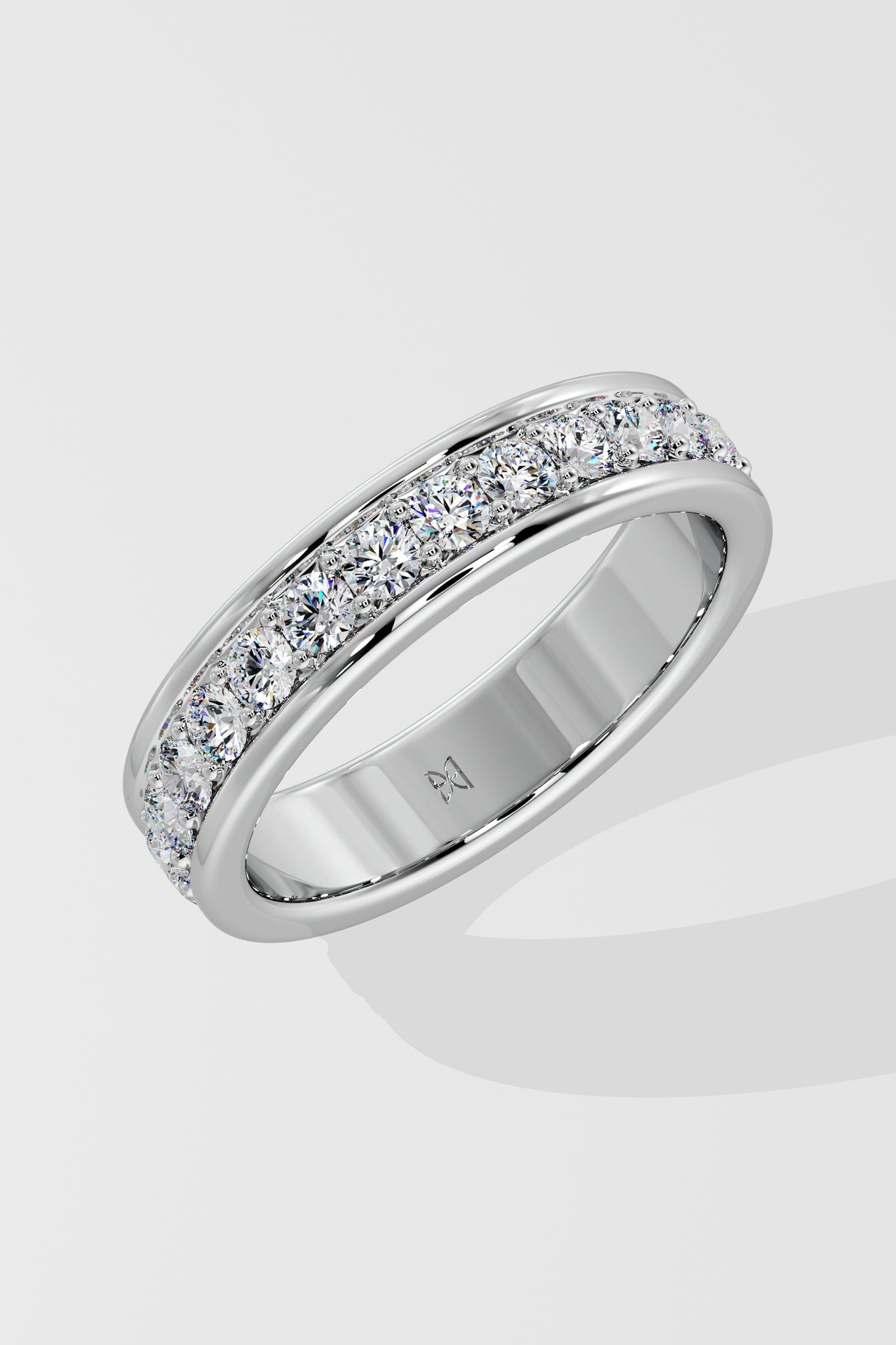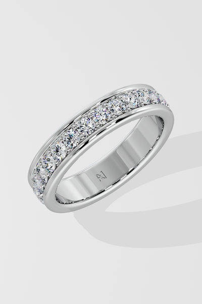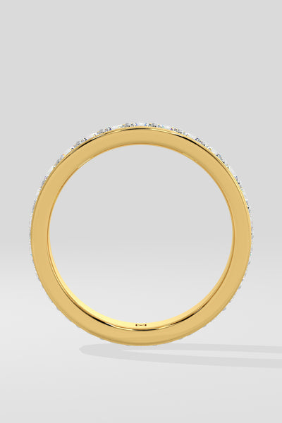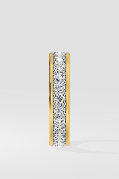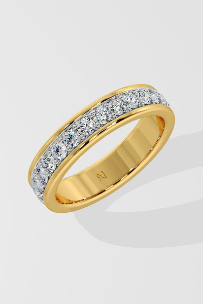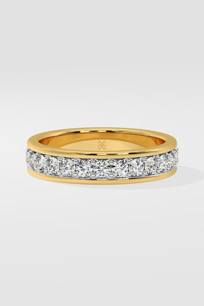 This combination Band features two sleek gold bands framing a central row of 0.06 Ct Pave set diamonds. An elevated classic.