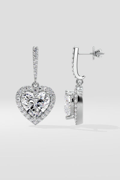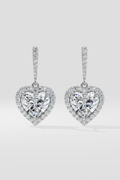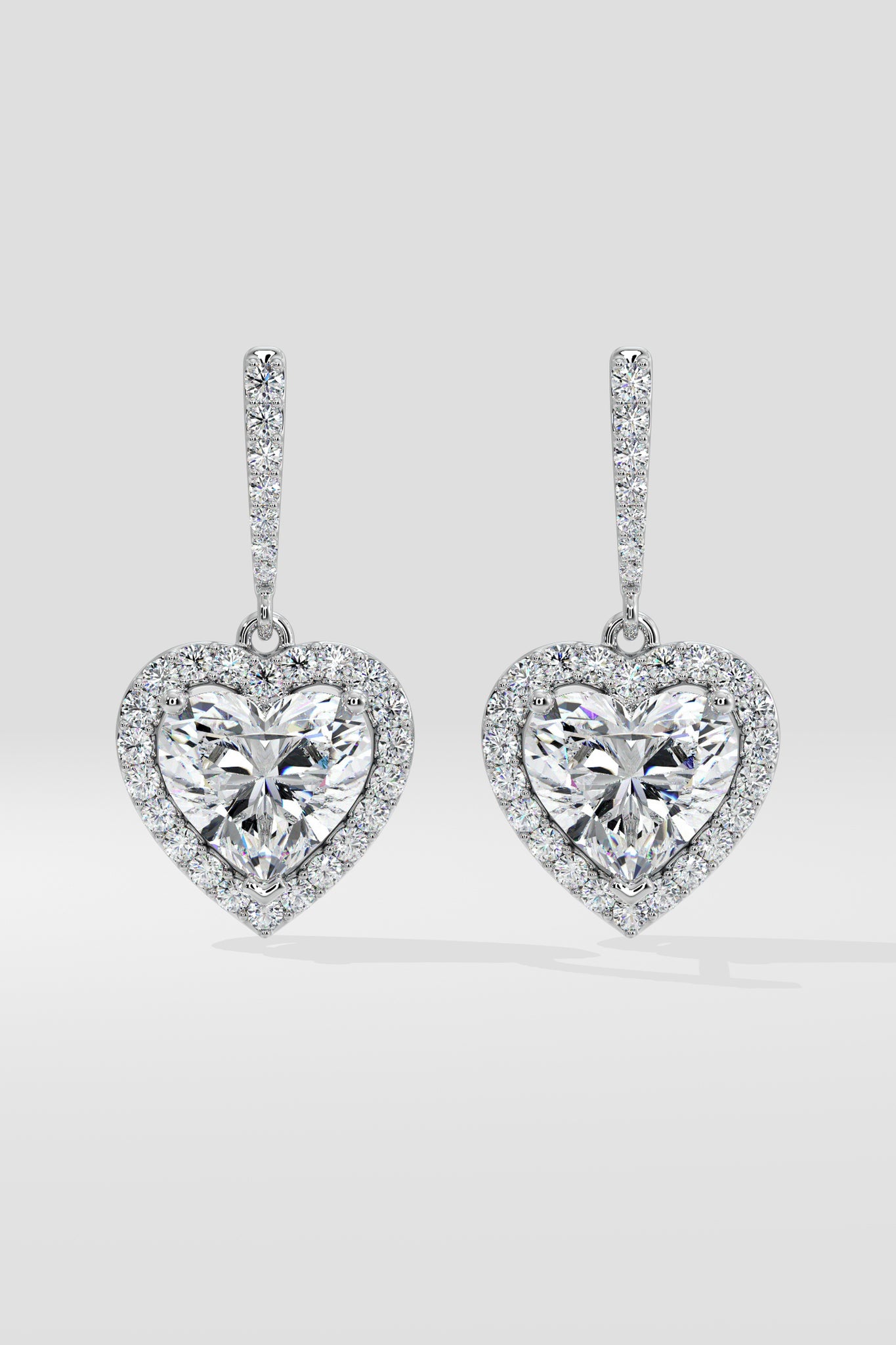 The Halo Danglers are 3/4 ct for each heart diamond with the classic halo set in micro pave. A beautiful balance of delicacy and dazzle makes this an unmistakable jewel to revere.
