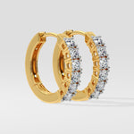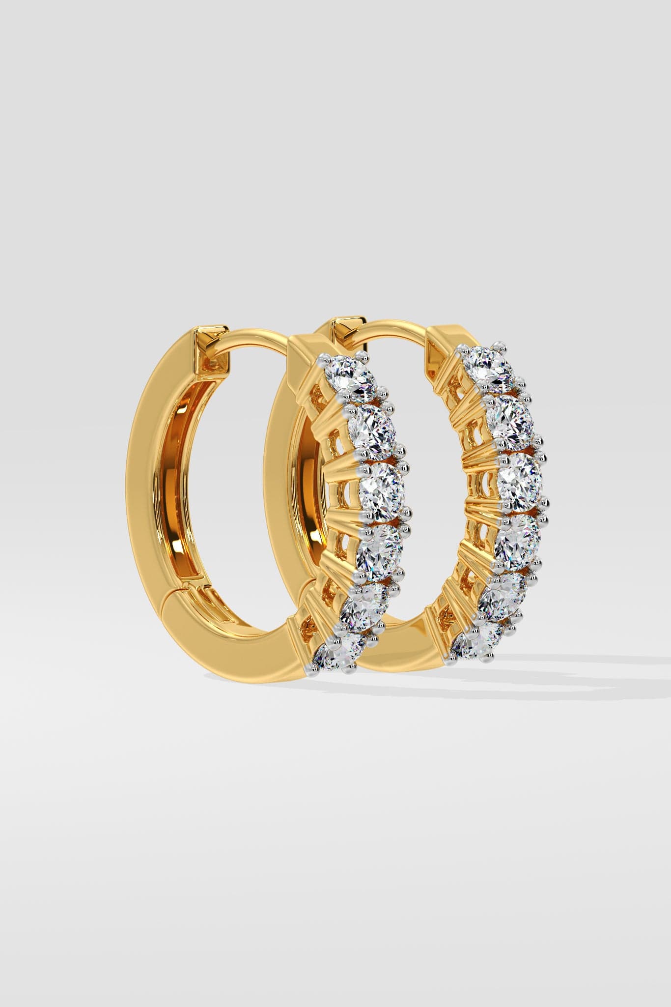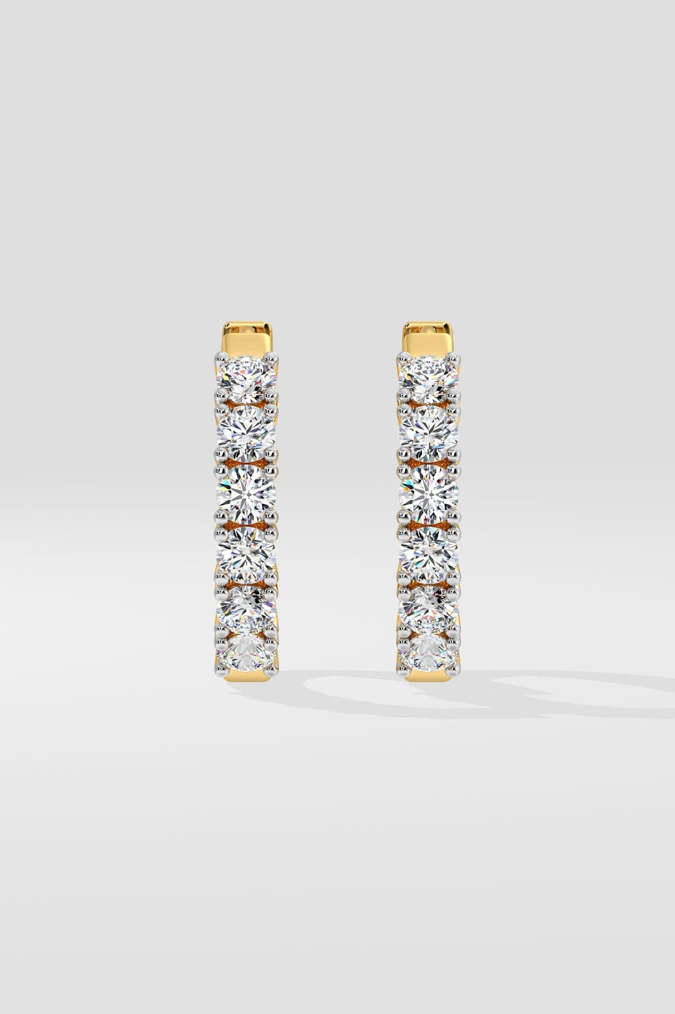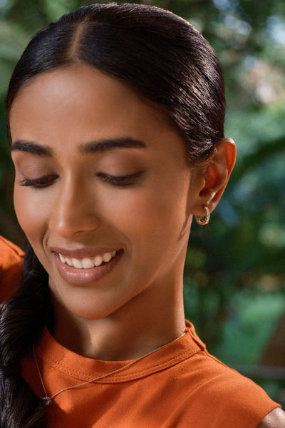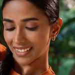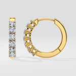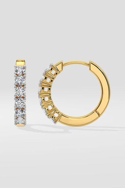 The Marseille Huggies feature a row of prong-set diamonds, offering a subtle sparkle in a sleek, comfortable design. Perfect for effortless, everyday elegance.