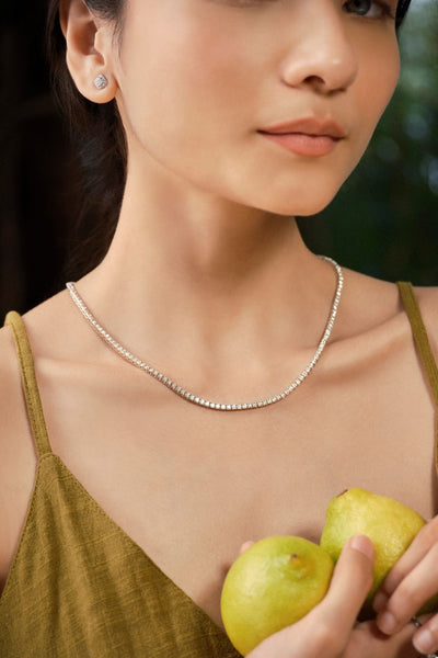 Our 5 pointer Tennis Necklace is the mini version of the classic. Lighter, easier and a minimalist addition for your daily necklace stack.