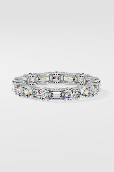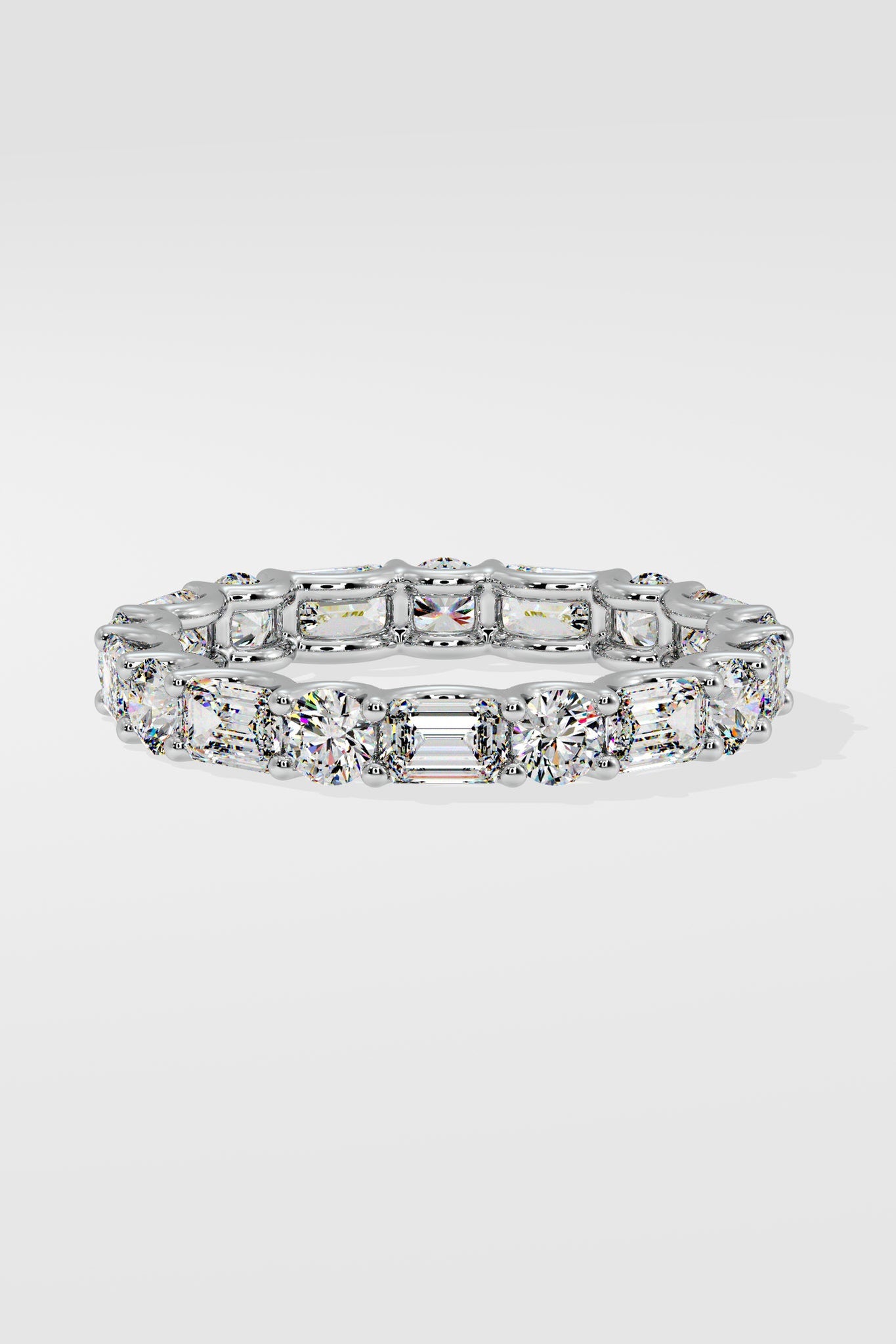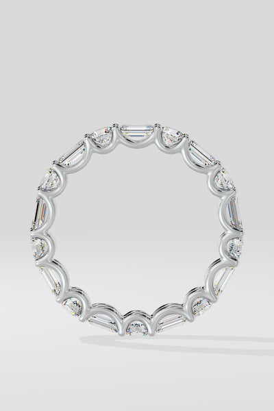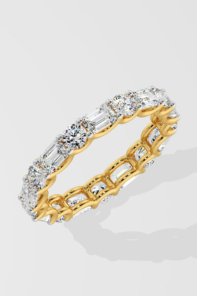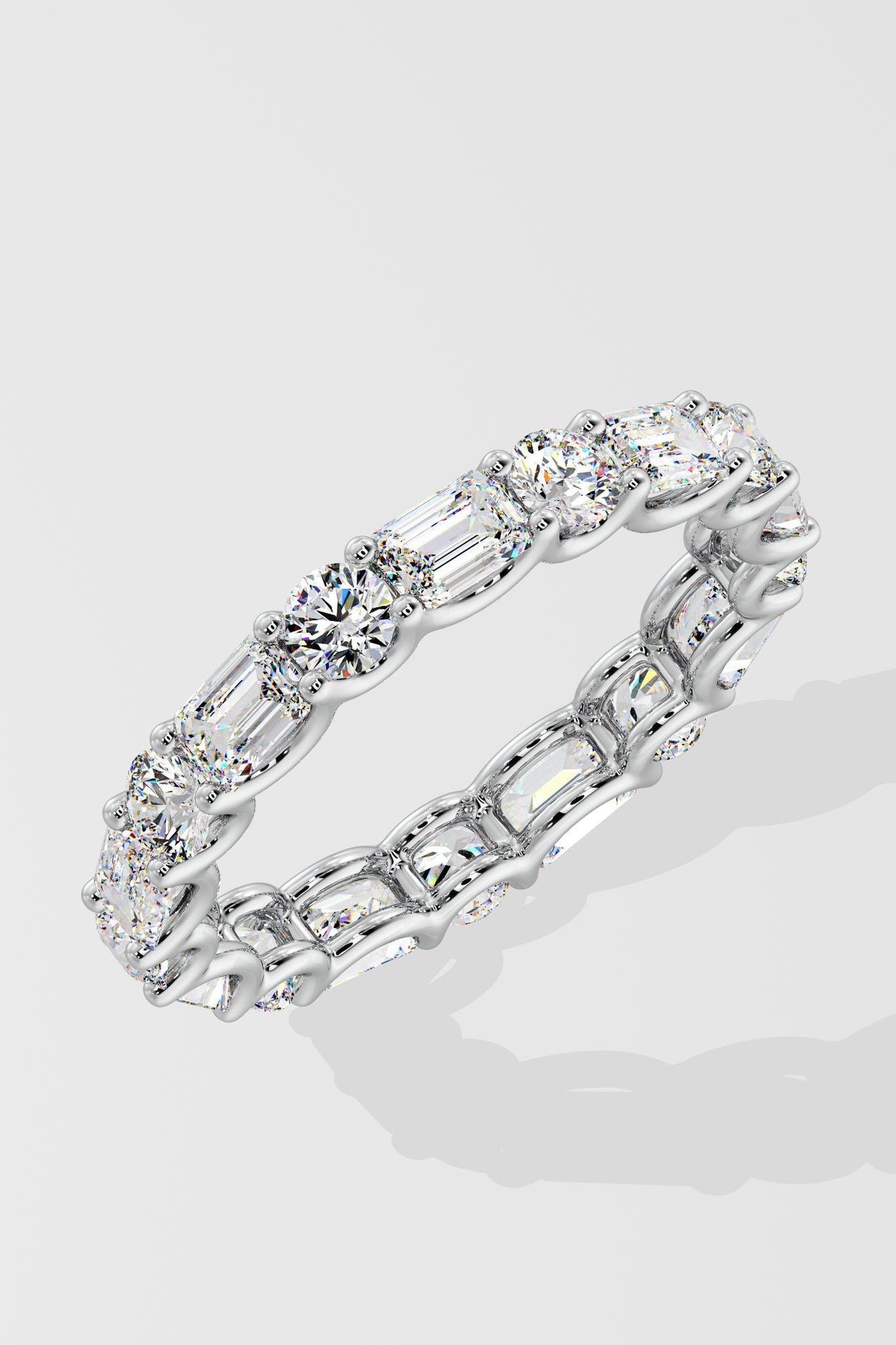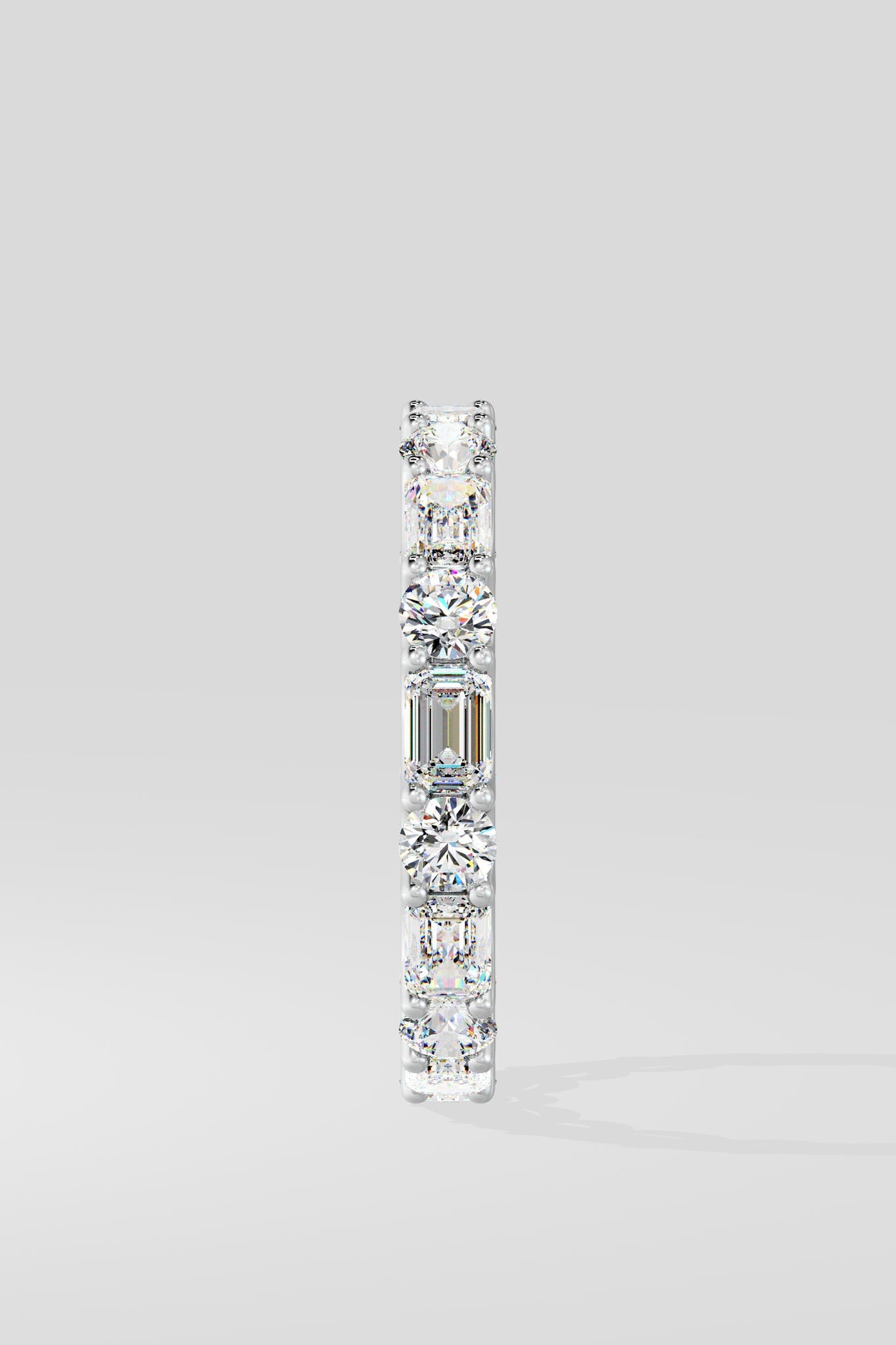 The Round & Emerald Eternity Band features 0.15-pointer diamonds elegantly set in a seamless loop, combining round & emerald cuts for a modern yet timeless design. Perfect for stacking or wearing solo as a statement piece.