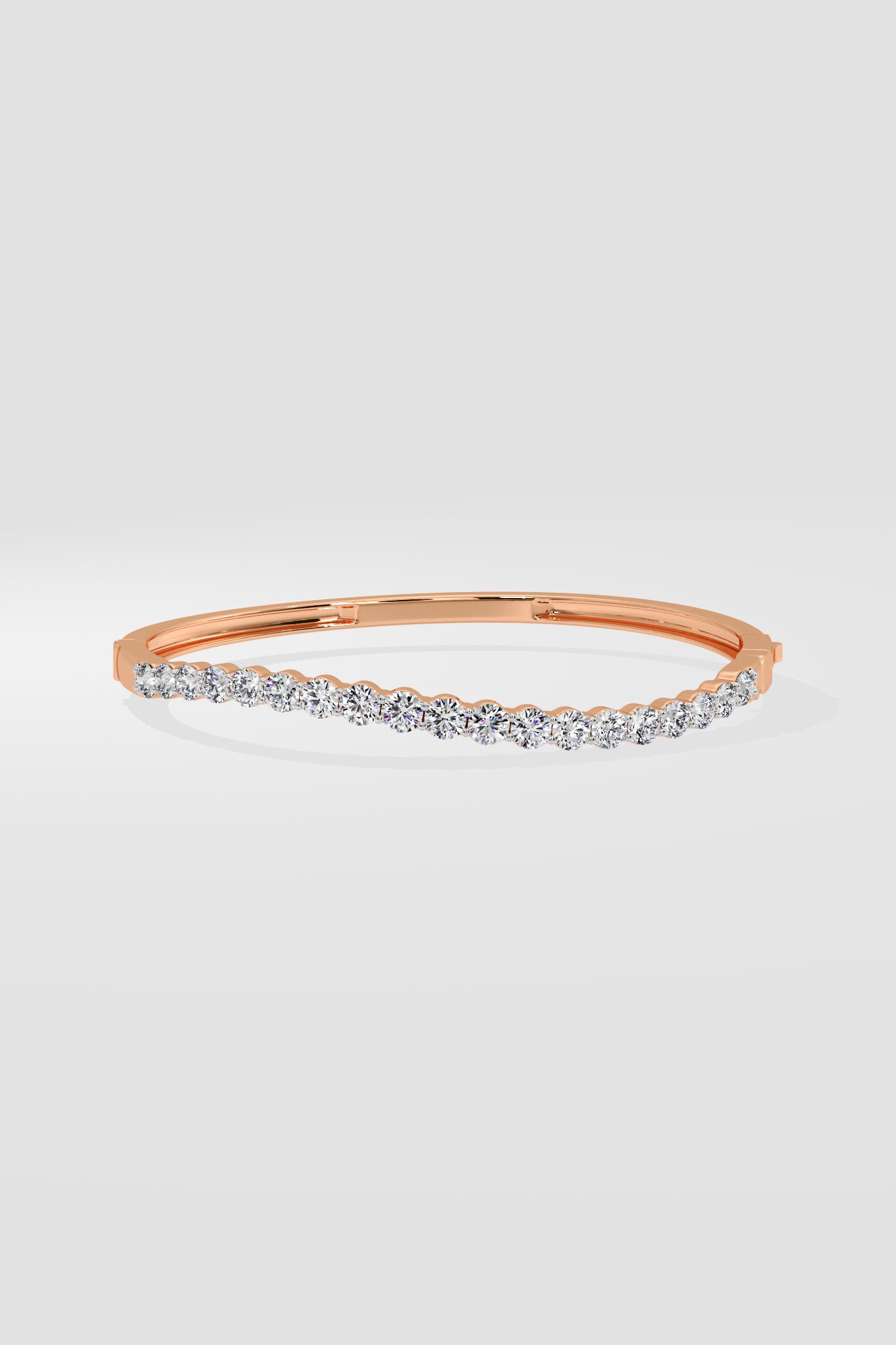 Swirl oval bangle features a graceful swirl design that wraps the wrist with fluid movement with 0.20 ct pointer diamonds. Lightweight and comfortable, it’s perfect for adding a subtle twist to everyday style.