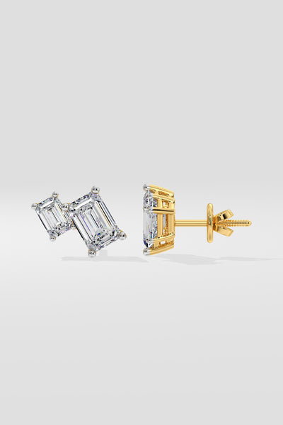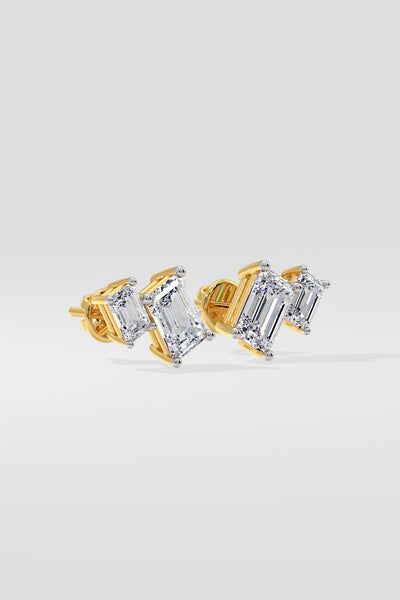 The Emerald Cut Duo Studs combine 1/2 ct & 1/3 ct Emerald cut diamonds. Part of the T-Shirt diamond collection the duos are a twist on the single stud to give a modern contemporary feel for your daily diamond style. Choose these to add to your essentials or gift a loved one something that they will cherish always.
