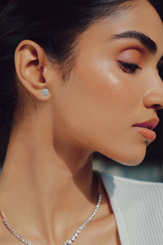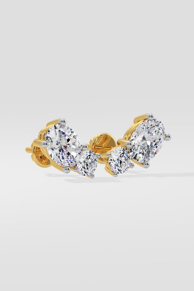 The Oval Duo Studs feature 1/2 Ct Ovals & 0.15 Ct Round diamond accents. Part of the T-Shirt diamond collection the duos are a twist on the single stud to give a modern contemporary feel for your daily diamond style. Choose these to add to your essentials or gift a loved one something that they will cherish always.