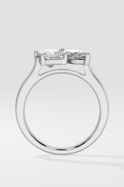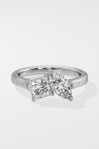 The Toi-Et-Moi Duo Ring features a single 1/2 ct Marquise diamond and a 3/4 ct Princess cut. Part of the T-Shirt diamond collection, the duos are a twist on the single diamond stud to add a contemporary lift to your daily diamond style.
