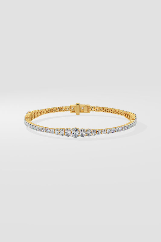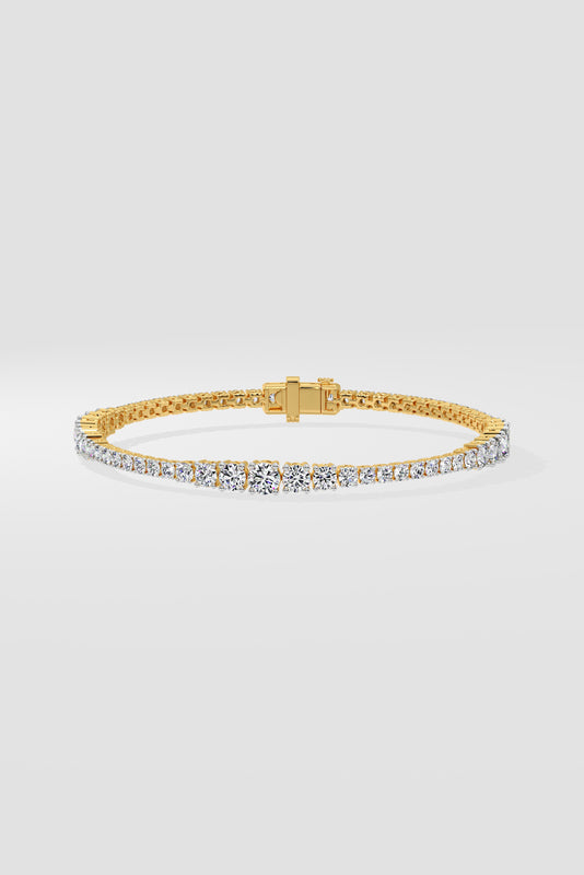 This Classic Round Bracelet is 1/2 ct each round brilliant. An everlasting design, impeccably made with the firepower of .50 pointers. Big, bold and audacious, this is true luxury. Customizable to your wrist size and optional gold color.